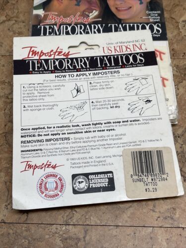 Lot Of 10 Packages Temporary Tattoos Maryland University Terrapins Terps JD