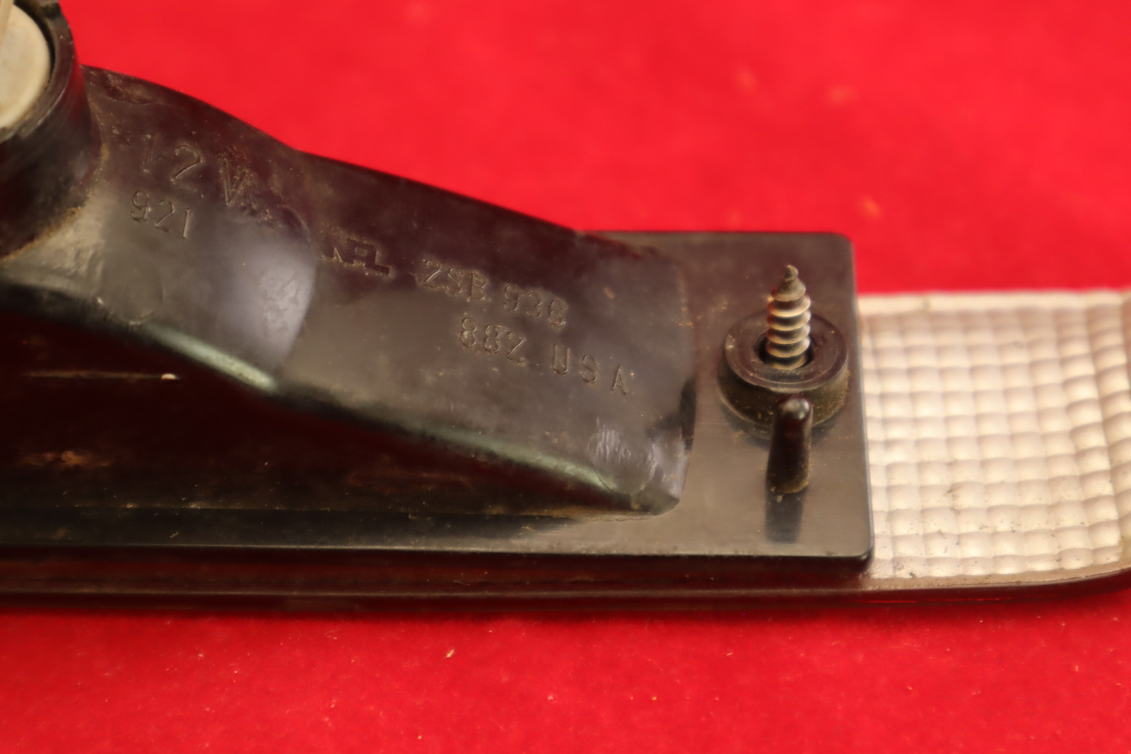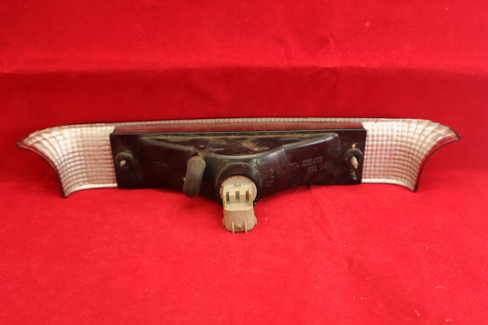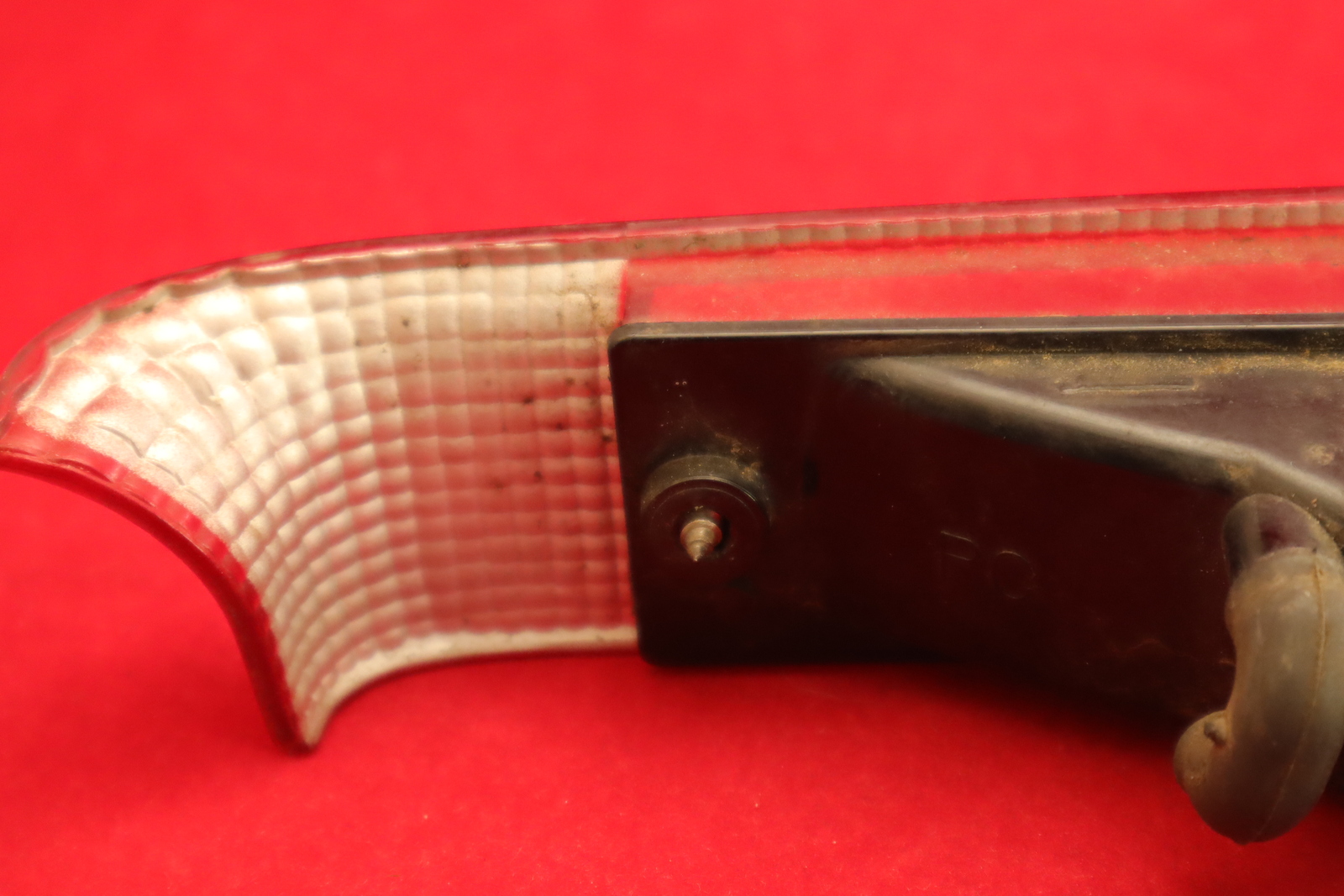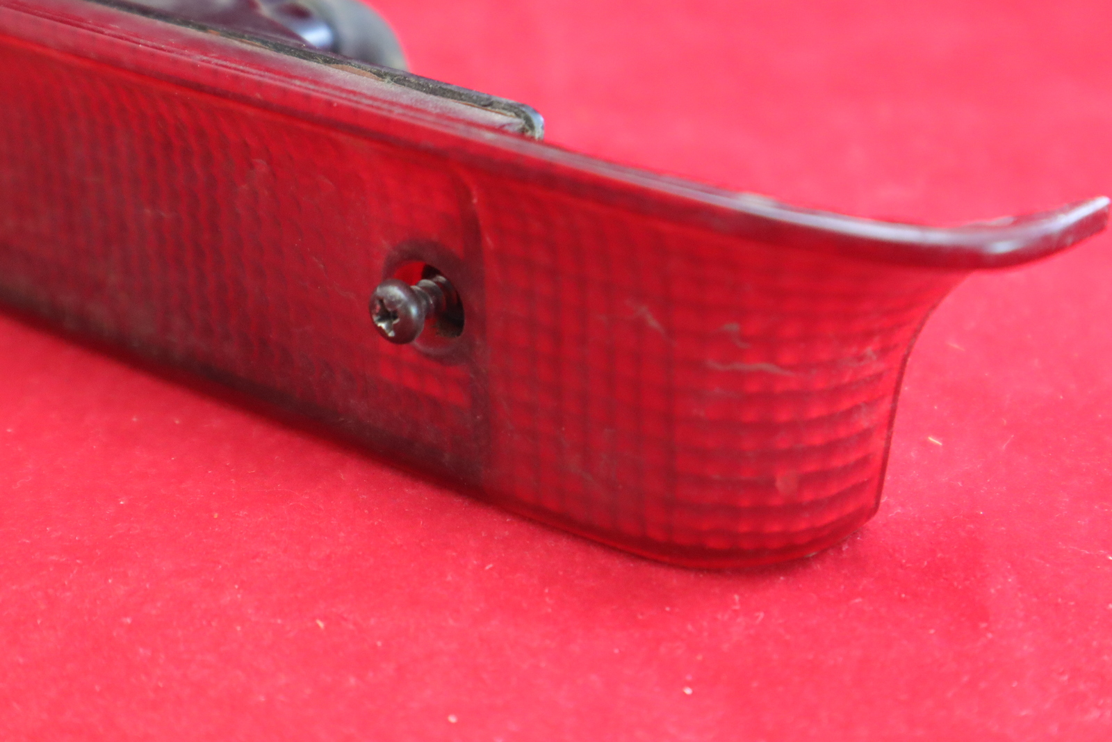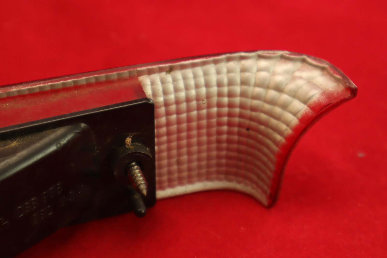 Condition: The light is in overall good used condition. The lens has surface wear and scratches on it from age and use, but there are no cracks or missing pieces. There are no cracks around the mounting holes. The rear housing is in good usable condition. The only damage is one of the alignment pins has broken off. Both of the original installation screws are present and included. There is a bulb with the light, but its working condition is unknown and I am having trouble pulling it out for some reason.