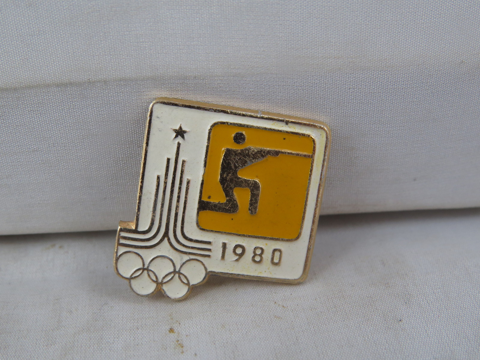 Up for sale is a Summer Olympic pin. It is from the 1980 Summer Games which were held in Moscow. It has a white base colour. The pin has an image of a man shooting a rifle stamped in on a yellow background with 1980 underneath. The other side of the pin has the official 1980 event logo stamped in. What a great addition to any pin collection.