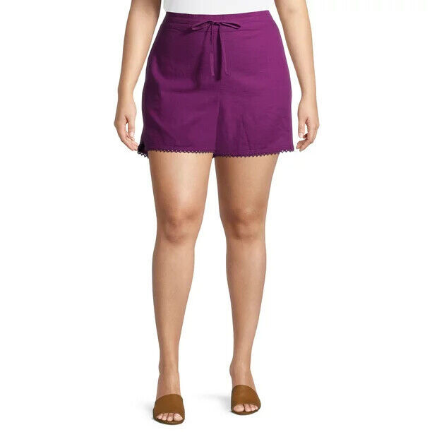 Terra And Sky Women's Plus Size Ruffle Edge Shorts Purple Size 2X