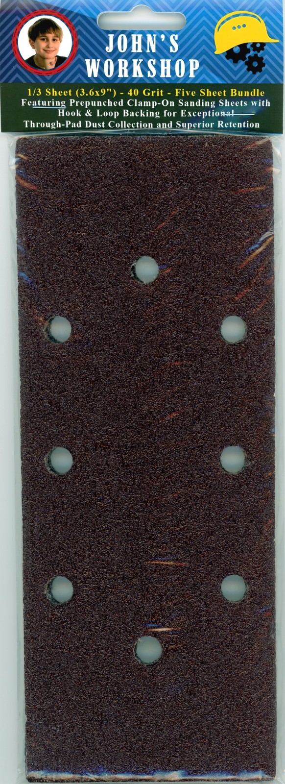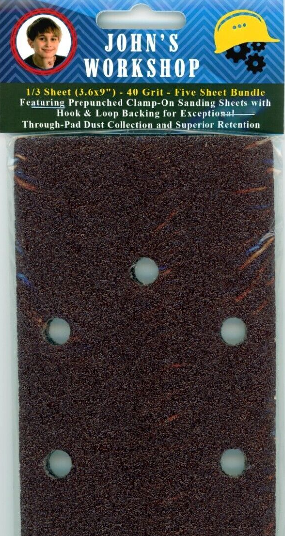 Steel Grip JD2617 - 1/3 Sheet (3.6x9") - 40 Grit - PrePunched - 5 Sheet Sandpaper Bundle