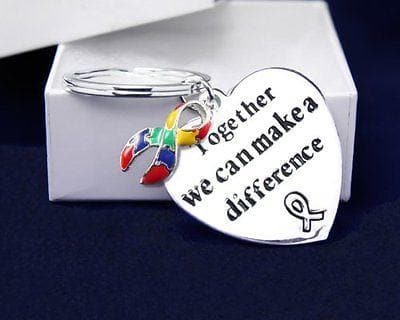 Autism ASD Awareness Ribbon Key Chain words "Together We Can Make A Difference"