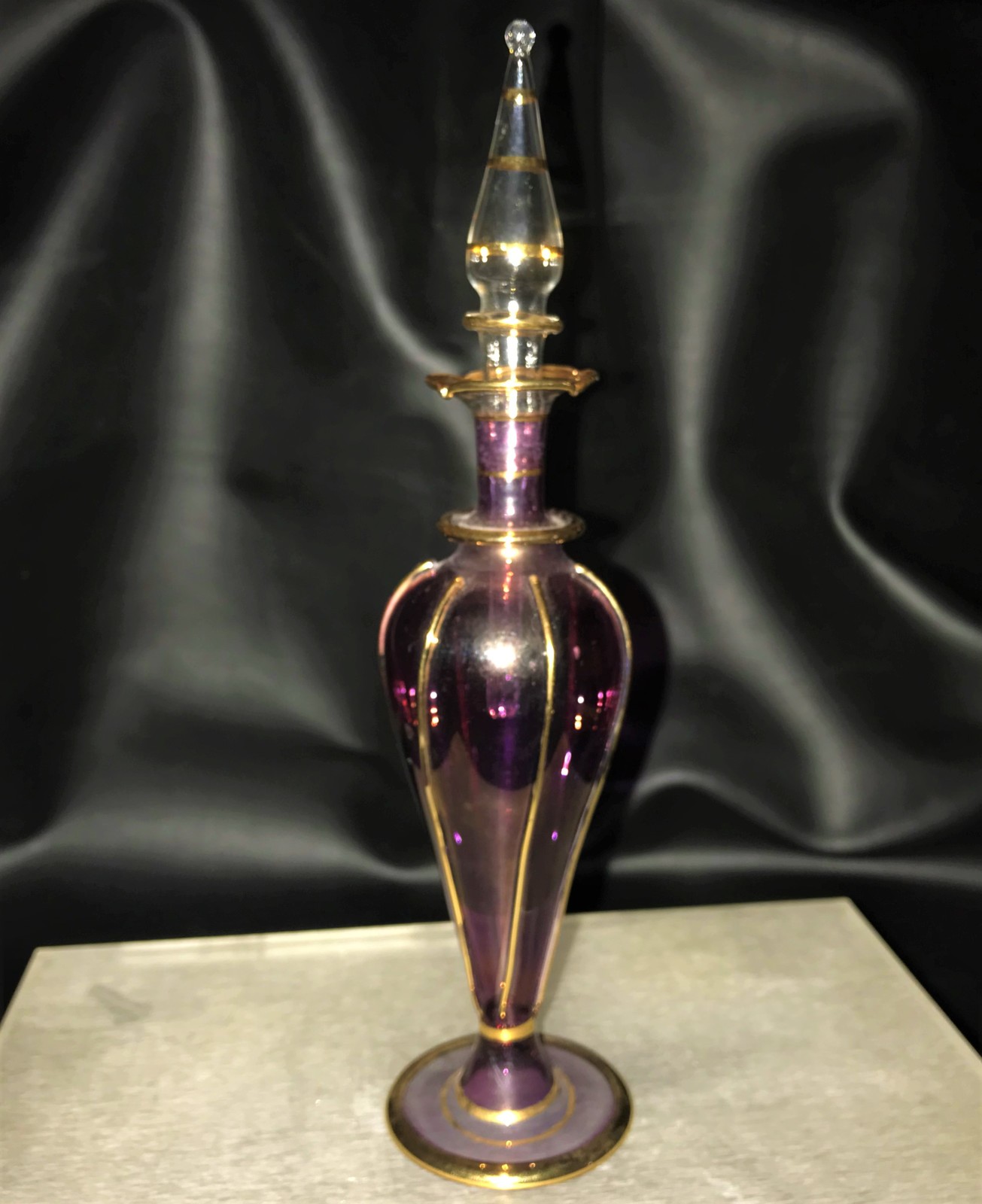 This beautiful scent bottle has a lavish purple body and beautiful stopper and is quite literally stunning.