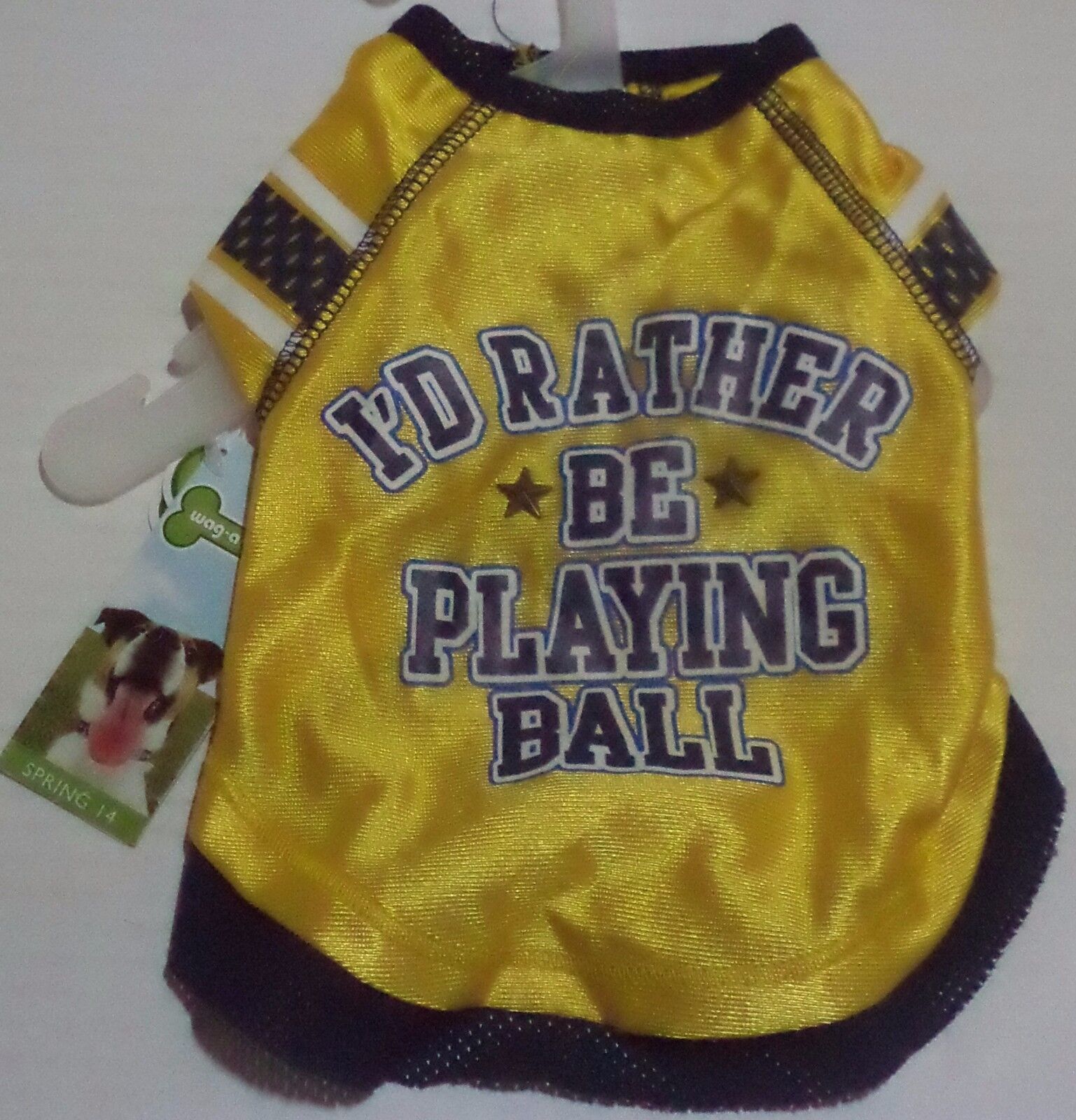You are Buying a Brand New Wag-A-Tude White, Yellow Blue I'D Rather Be Playing Ball Dog Jersey XXS, XS