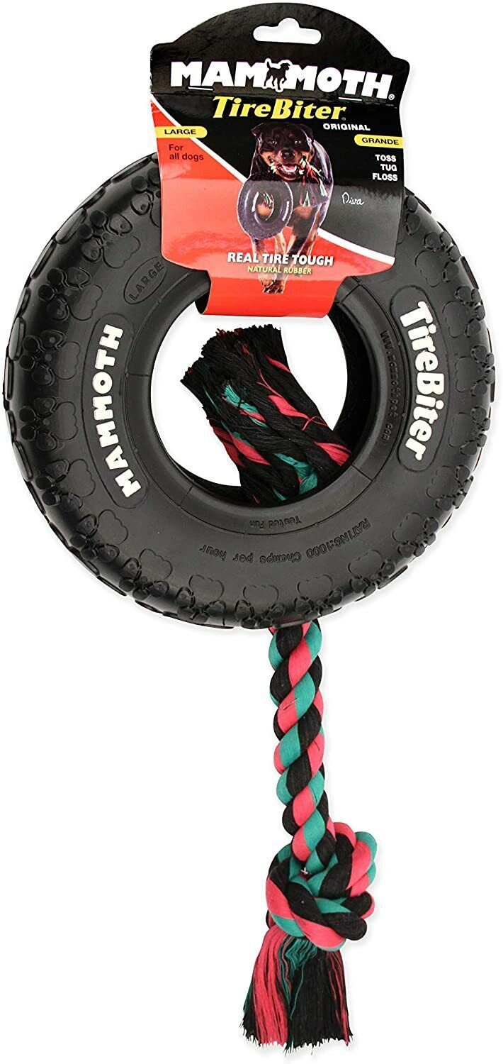 You are buying a Brand New And Factory Sealed Mammoth TireBiter Originals with Cotton-Poly Rope ? Natural Rubber Dog Toys ? Dog Toys for Extra Long Interactive Play ? Strong Chewer Toys for Dogs - Large, 10?