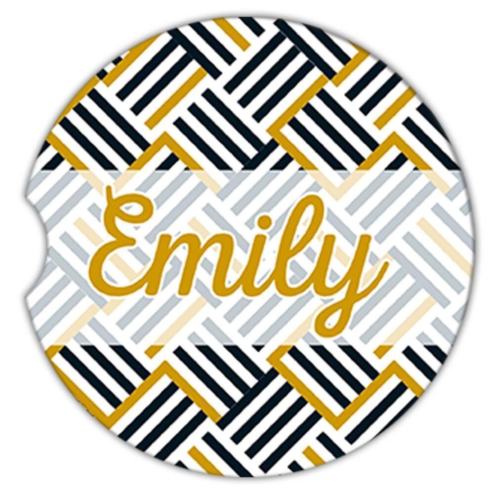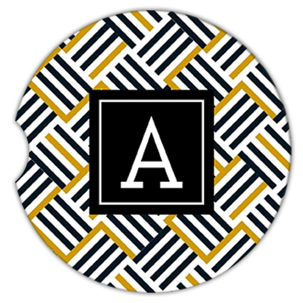 Striped Squares : Gift Coaster Black Gold Scandinavian Modern Contemporary Desig