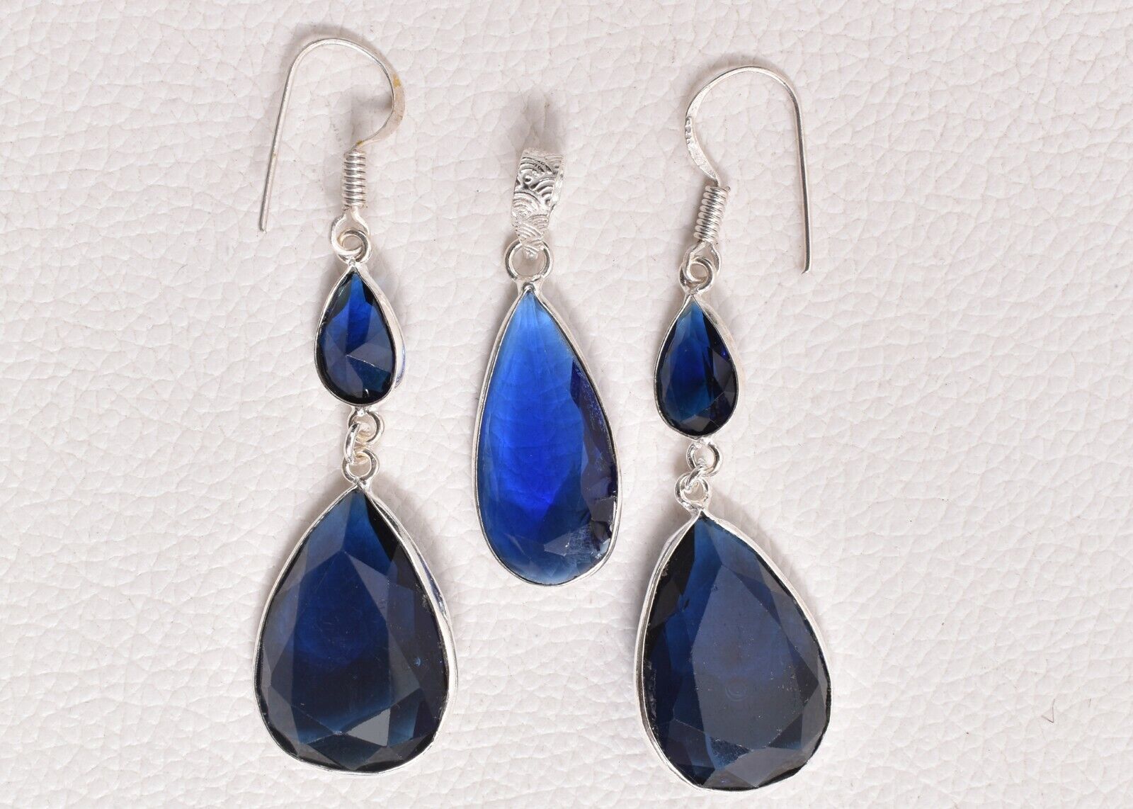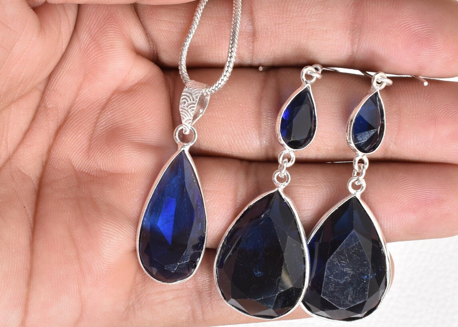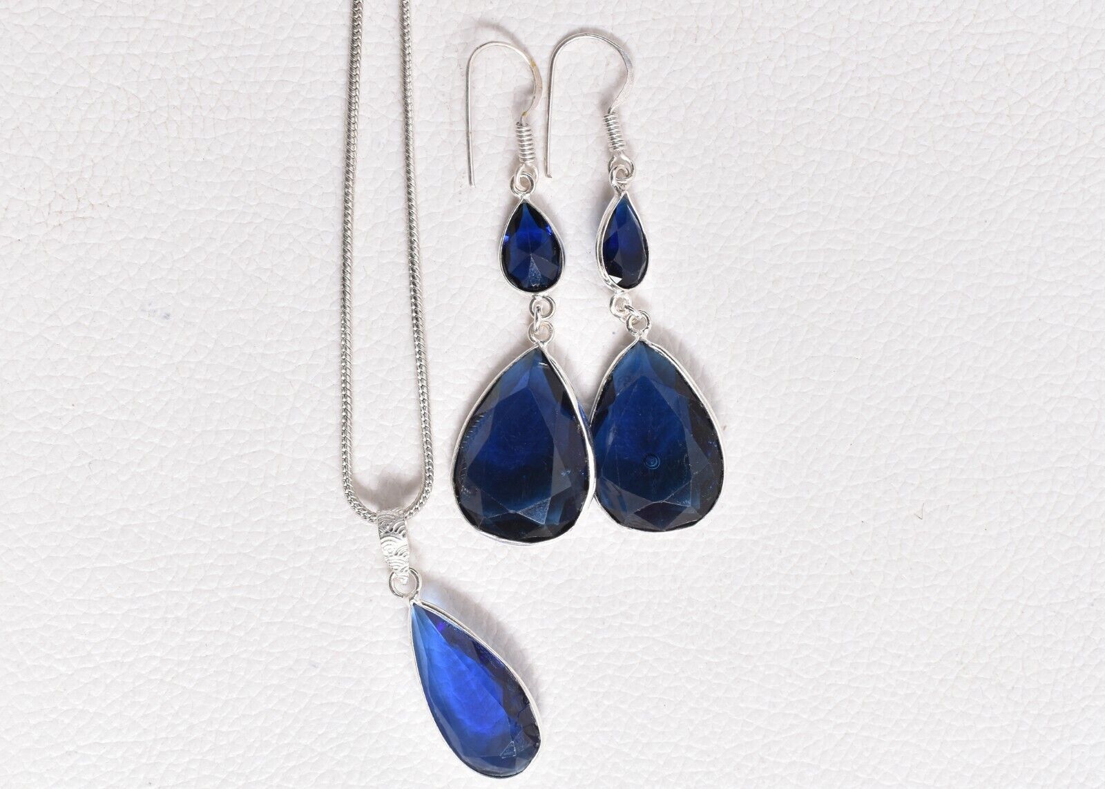 925 Sterling Silver Topaz Gemstone Handmade Necklace Earrings Her Gift SET-1054