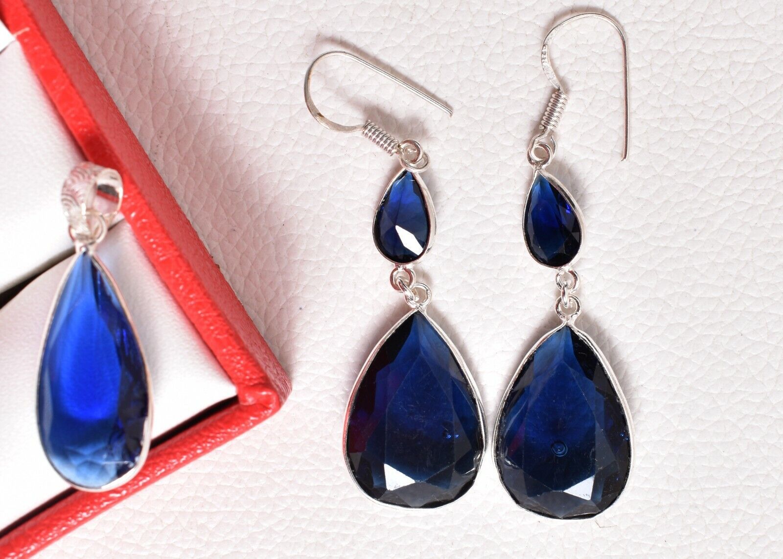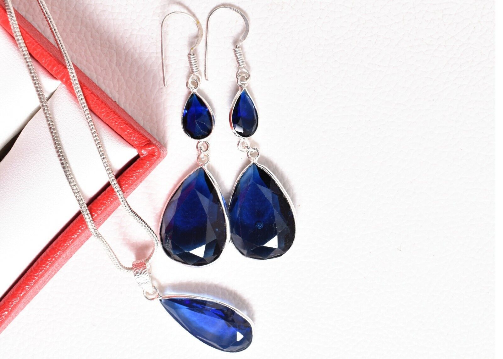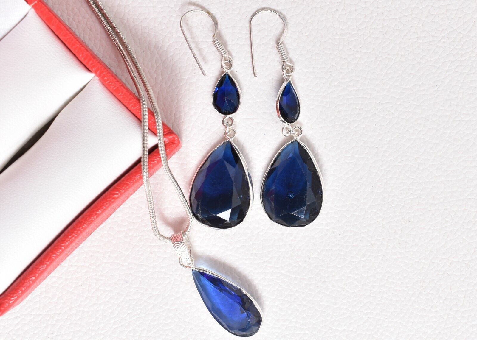 925 Sterling Silver Topaz Gemstone Handmade Necklace Earrings Her Gift SET-1054