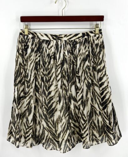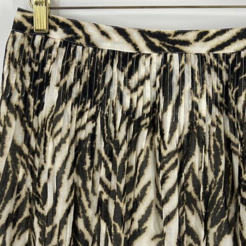 Talbots A Line Pleated Skirt Size 10 Petite Tan Black Animal Print Lined Cotton