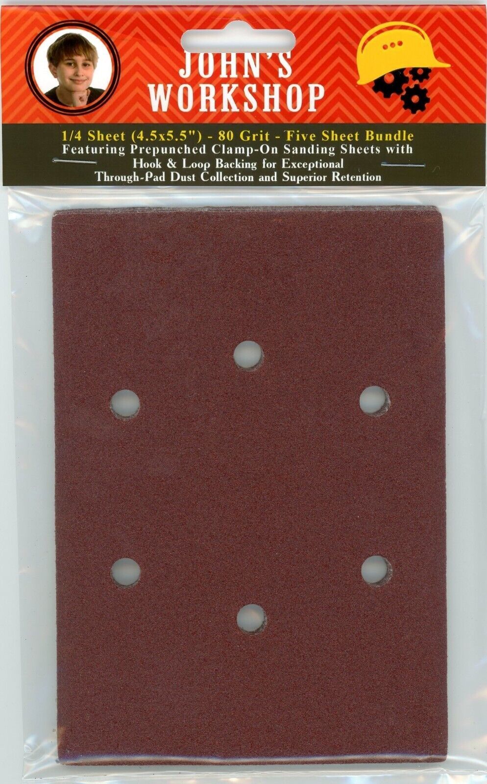 Drill Master 61311 - 1/4 Sheet - 80 Grit - PrePunched - 5 Sandpaper Bundle