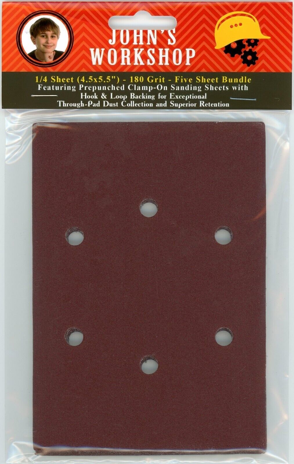 Drill Master 61509 - 1/4 Sheet - 180 Grit - PrePunched - 5 Sandpaper Bundle