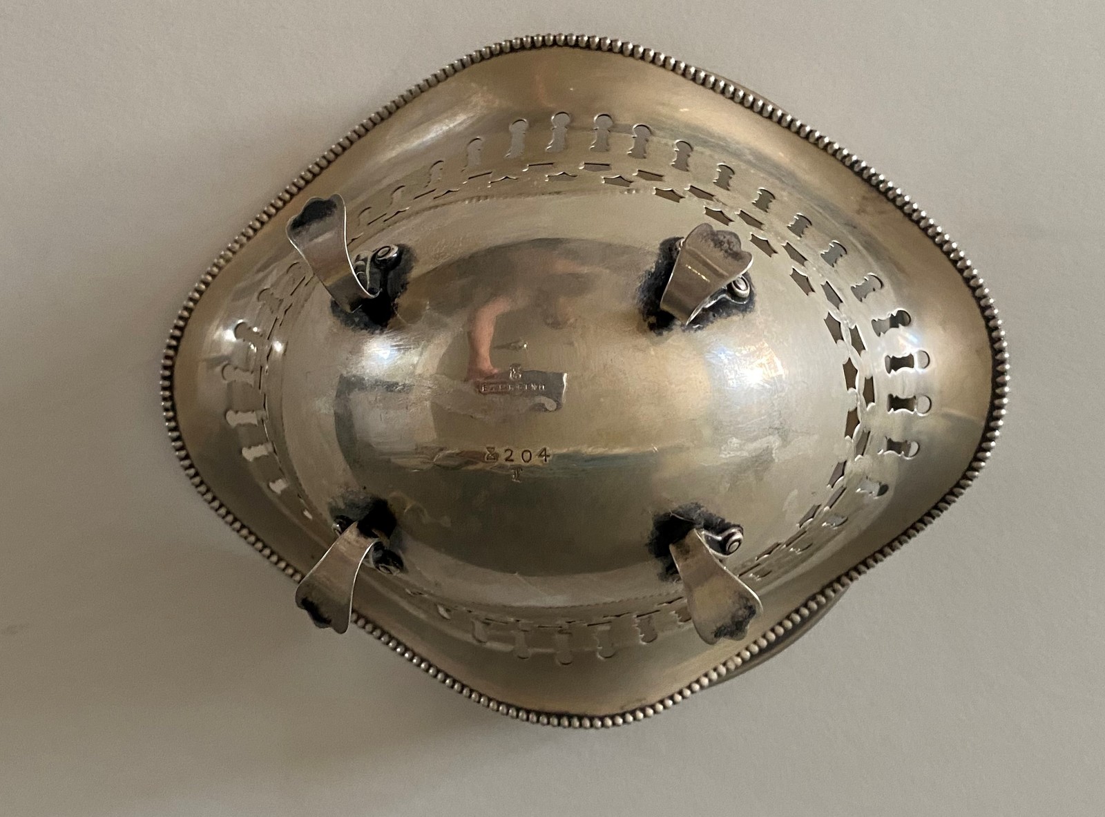 This Beautiful Sterling Silver candy dish has a weight of 5.75 oz and is clearly marked as seen in our last picture. This bowl also doubles as a fruit server however, it'll serve you any way you choose to use it while sparking conversations of how classy your Victorian serving dish is.