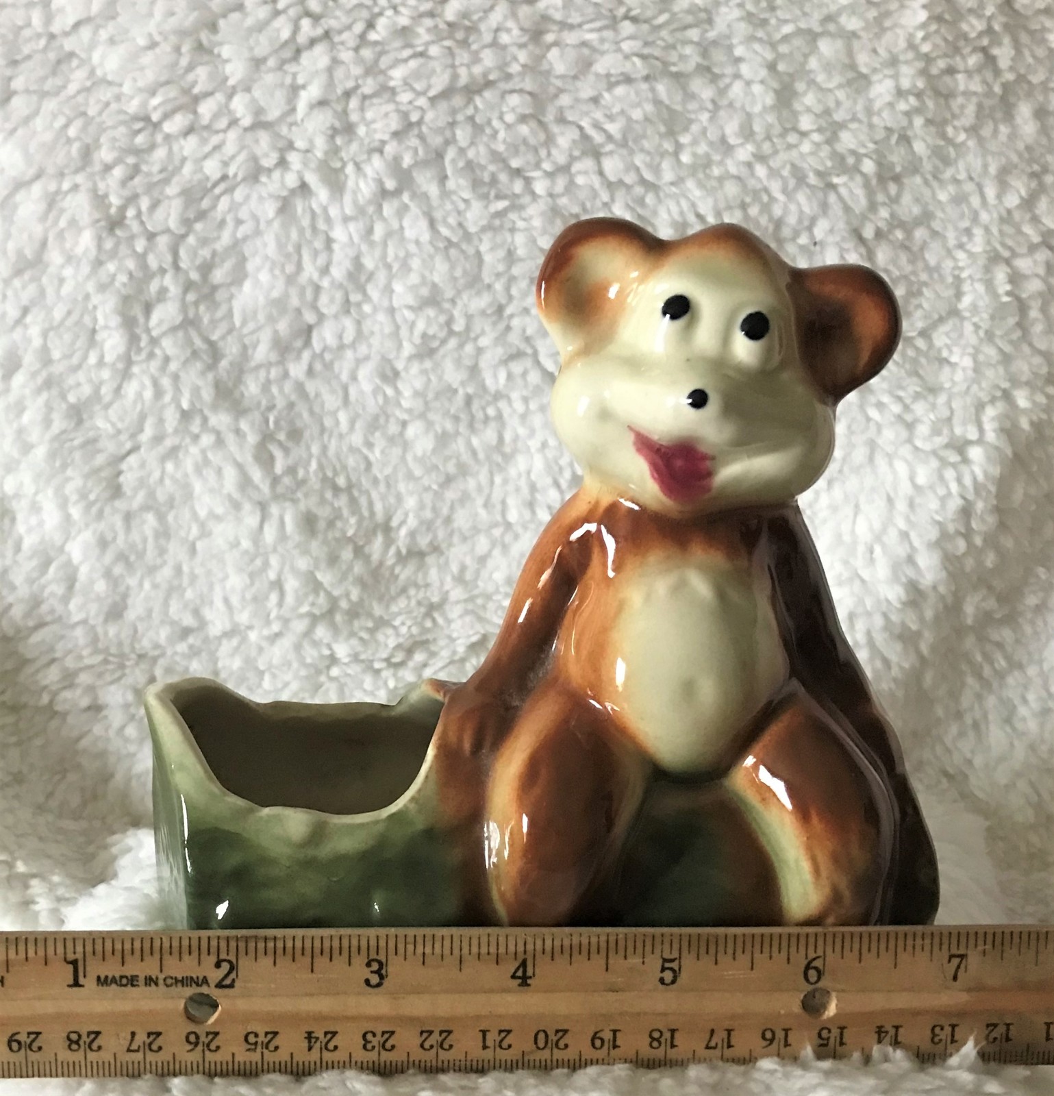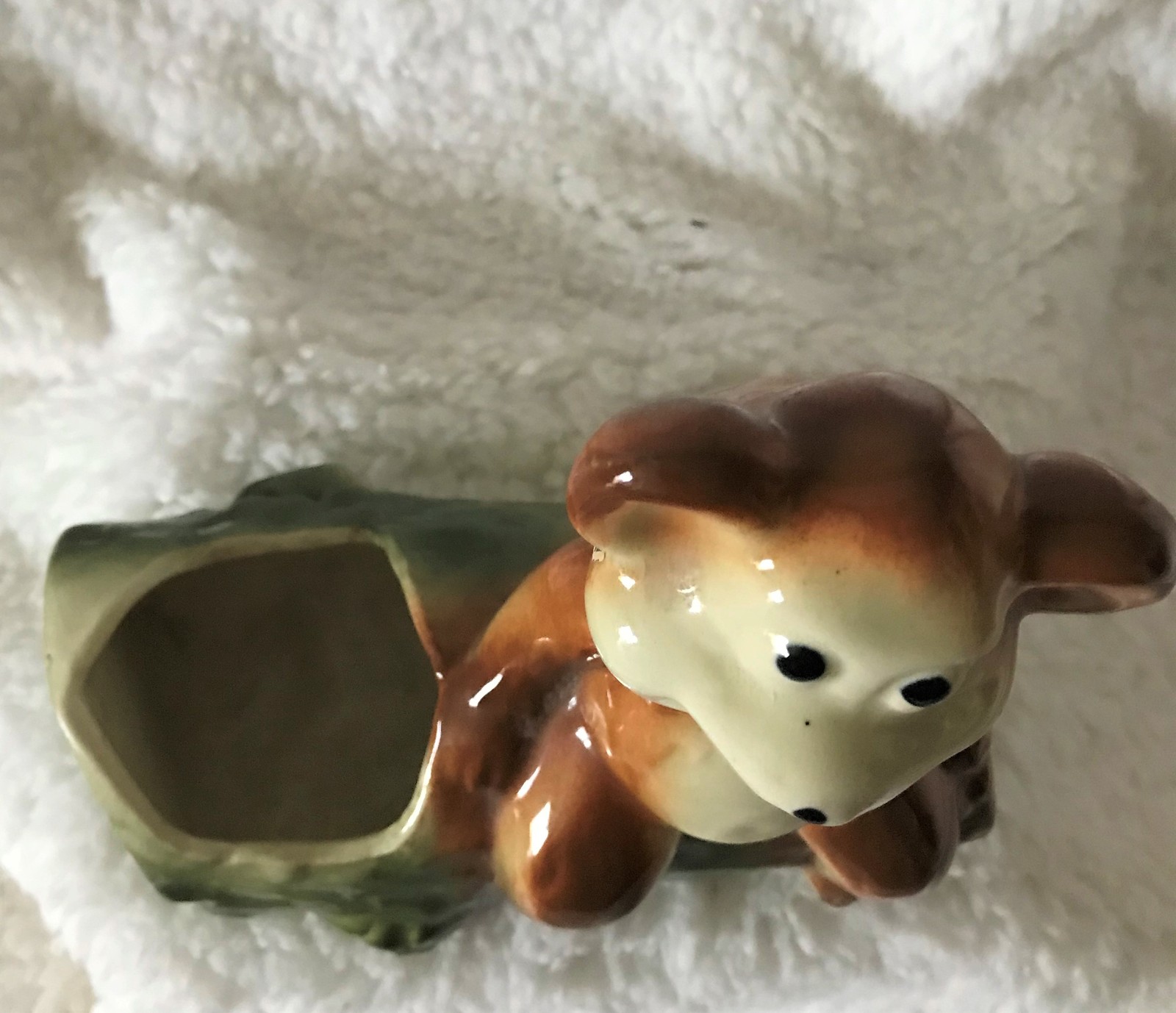 Falling under the category of totally adorable, while being very useful, this cute little bear on a log planter is a typical piece from Japan in that era. This piece is in perfect condition. Please see our pictures.