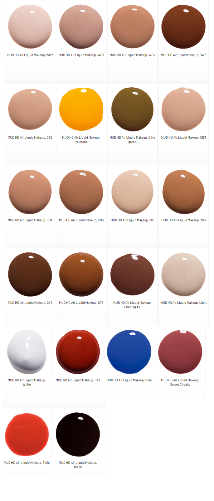 Developed specifically for use with the airbrush, this silicone-based formula goes on like makeup–rather than paint–to create sheer, beautiful coverage with a dewy appearance. It works seamlessly with any MUD cosmetic product. Choose from 22 shades, many of which have been formulated to exactly match certain MUD Cream Foundations, Cheek Colors, Highlights, and Shadows. Also includes 6 colors for extra versatility when mixing and color matching. 0.50 fl. oz. / 14mL bottle