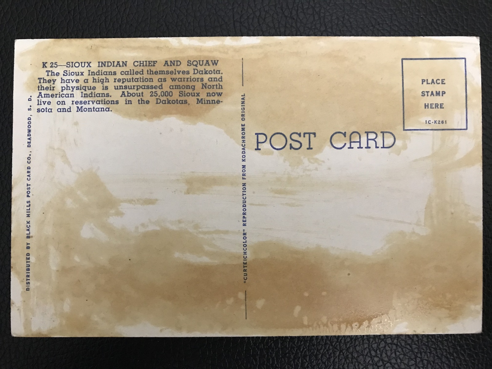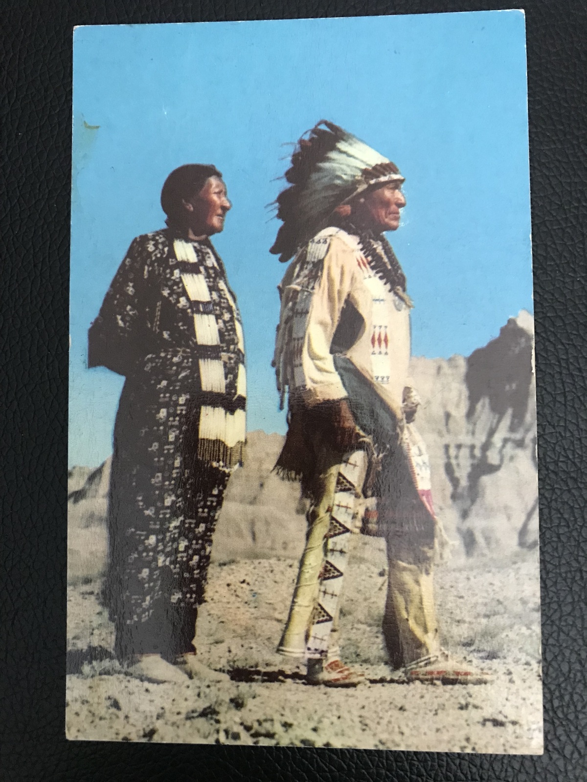 Early Chrome Postcard - Sioux Indian Chief and Squaw