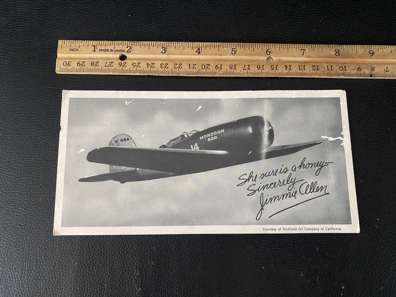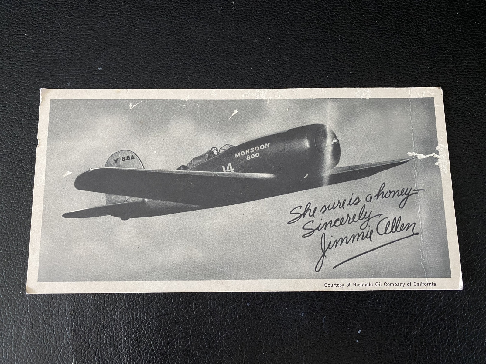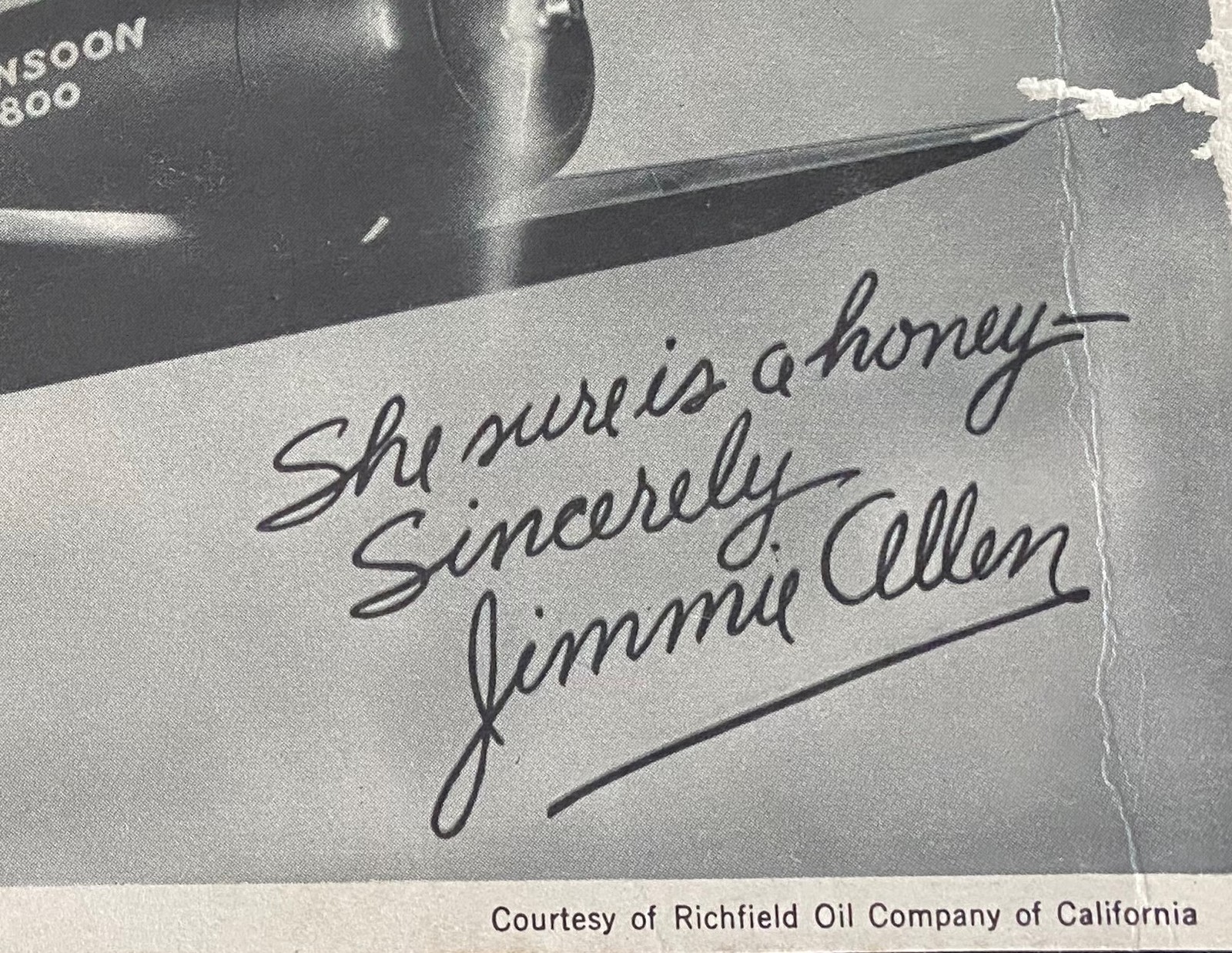 A 1930's Jimmie Allen Signed Photo of Him Flying The Monsoon 600