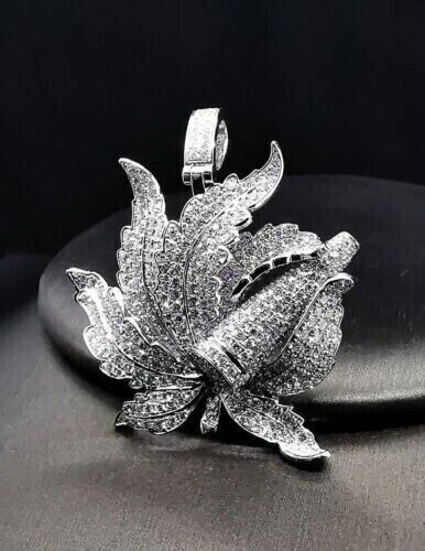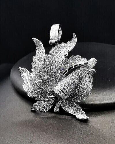 3Ct Diamante Taglio Rotondo Lab-Created Foglia Ciondolo 14K Bianco Finitura Oro