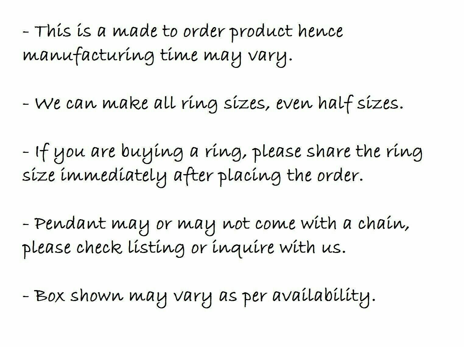 Siamo un produttore di gioielli con sede negli Stati Uniti e in India. Siamo in grado di realizzare qualsiasi tipo di moda e gioielleria raffinata. Se sei interessato all'acquisto all'ingrosso, all'ingrosso o all'ordine personalizzato, ti preghiamo di contattarci direttamente tramite il sistema di messaggi di, ti risponderemo con il miglior prezzo 3. In caso di domande o problemi con il tuo ordine, non esitare a contattarci tramite il messaggio o l'e-mail del servizio clienti prima di lasciarci qualsiasi feedback neutro/negativo o aprire un eBay richiesta. Risolveremo il problema in modo soddisfacente. 4. A causa dell'elevato volume di e-mail e telefonate, si prega di attendere 1-2 giorni lavorativi per una risposta. Risponderemo al tuo messaggio nell'ordine ricevuto e faremo de