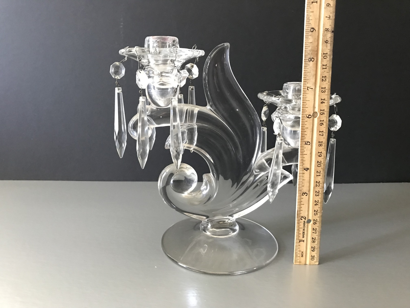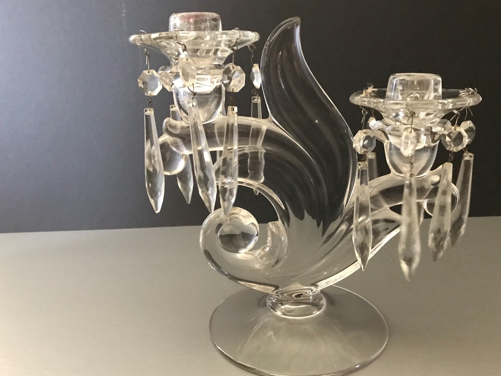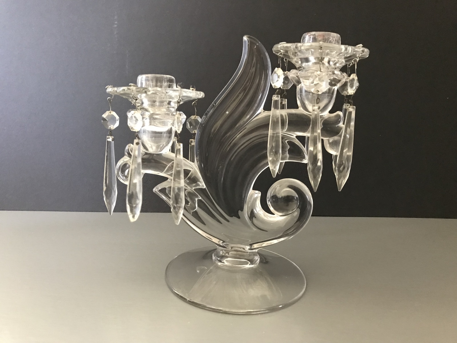 1940's Art Deco Fleur-De-Lis Crystal Candelabra