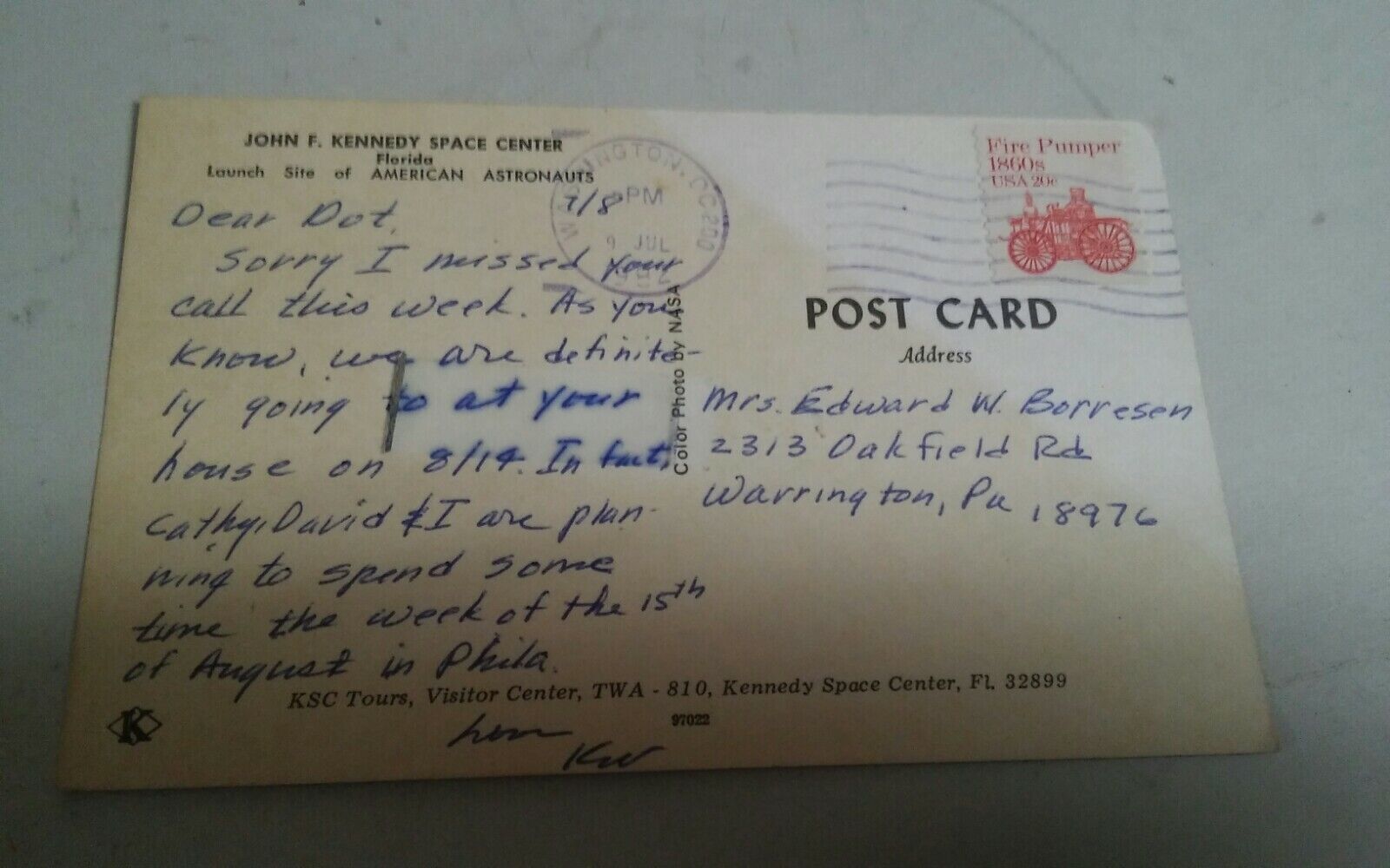 Here is a good used condition postcard. Kennedy Space Center Florida. Has a rocket launch onthe front. Postmarked 1982. ,