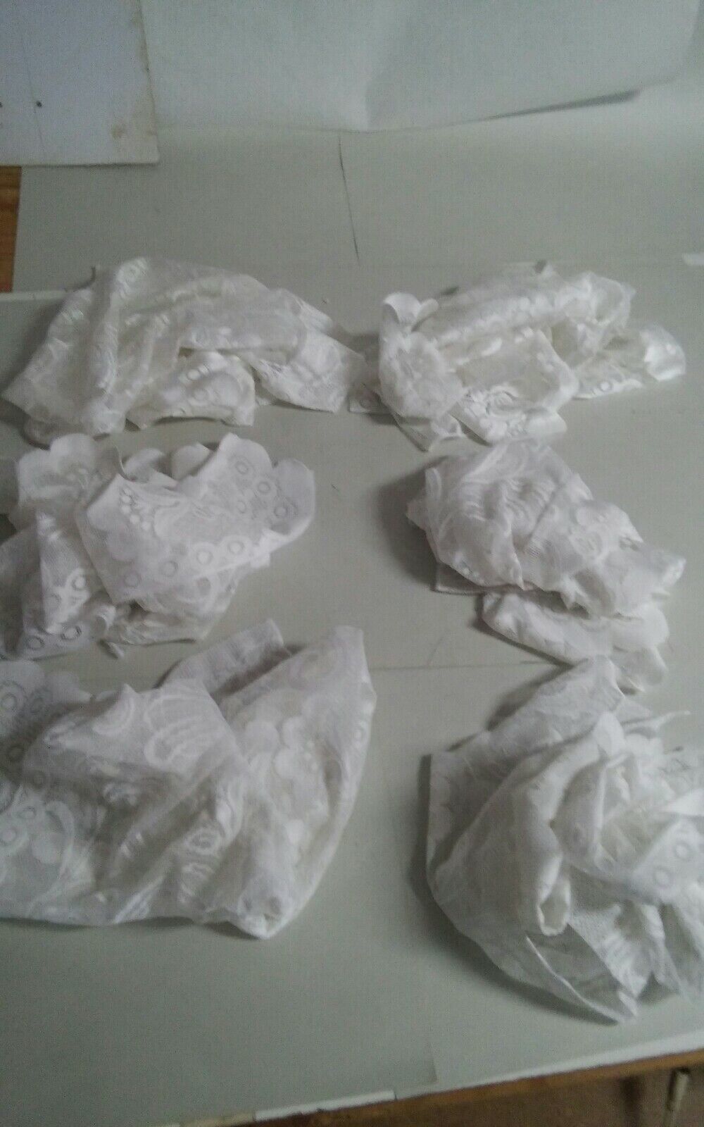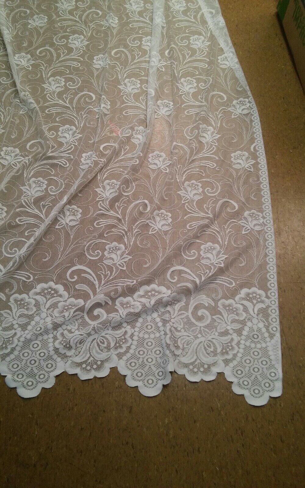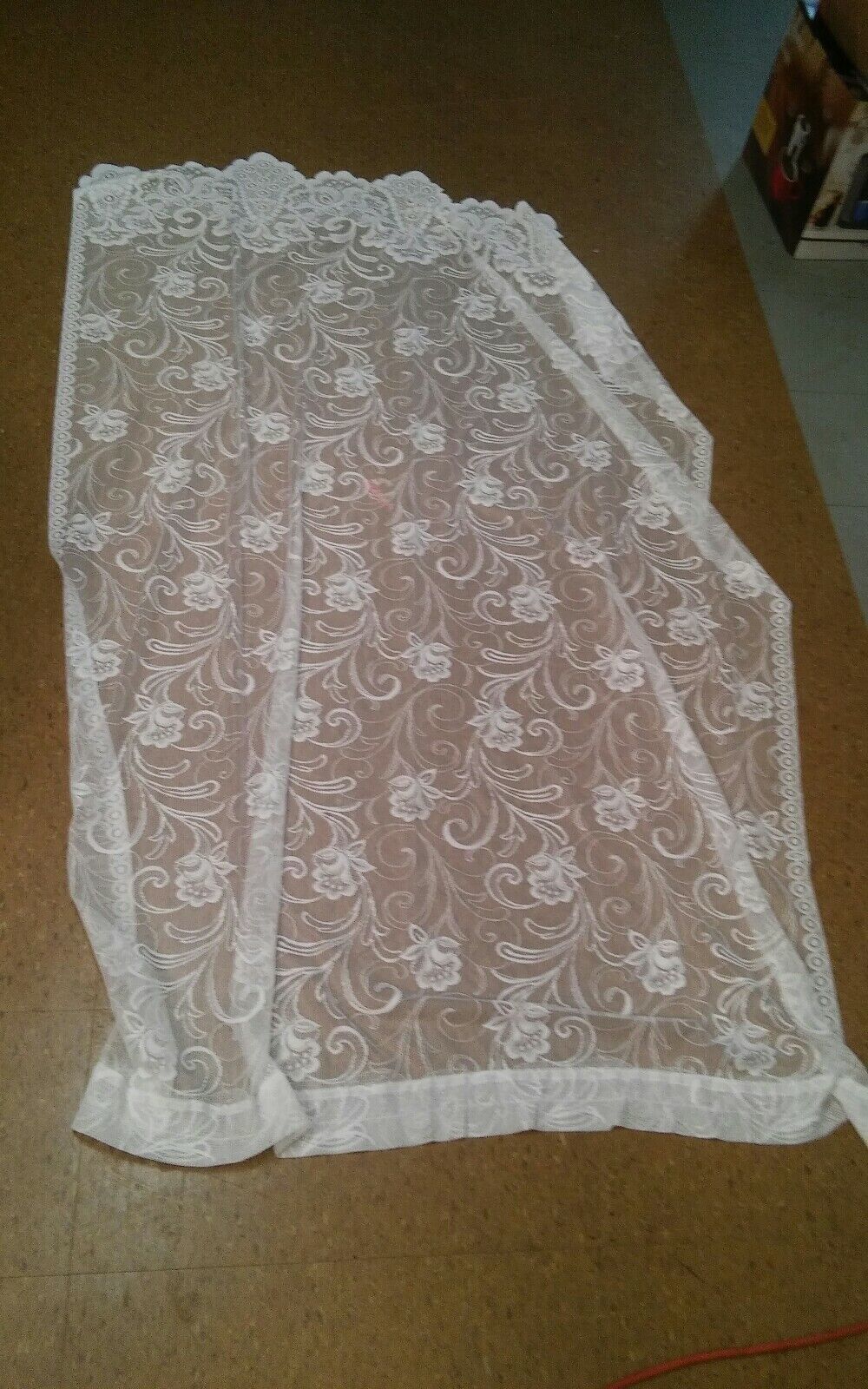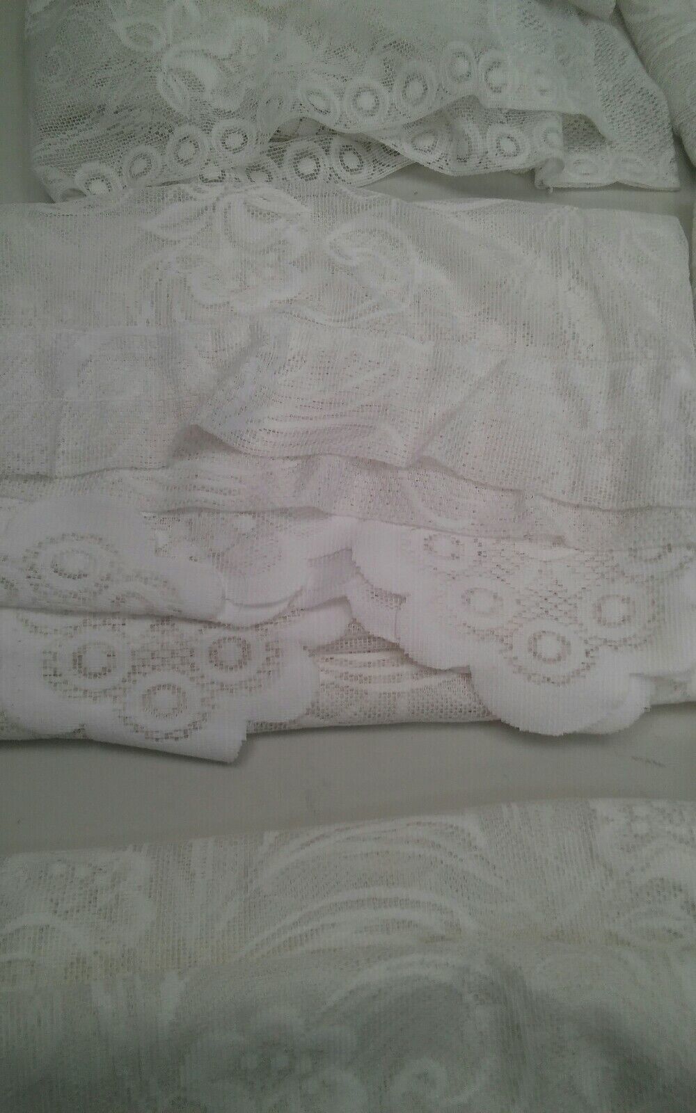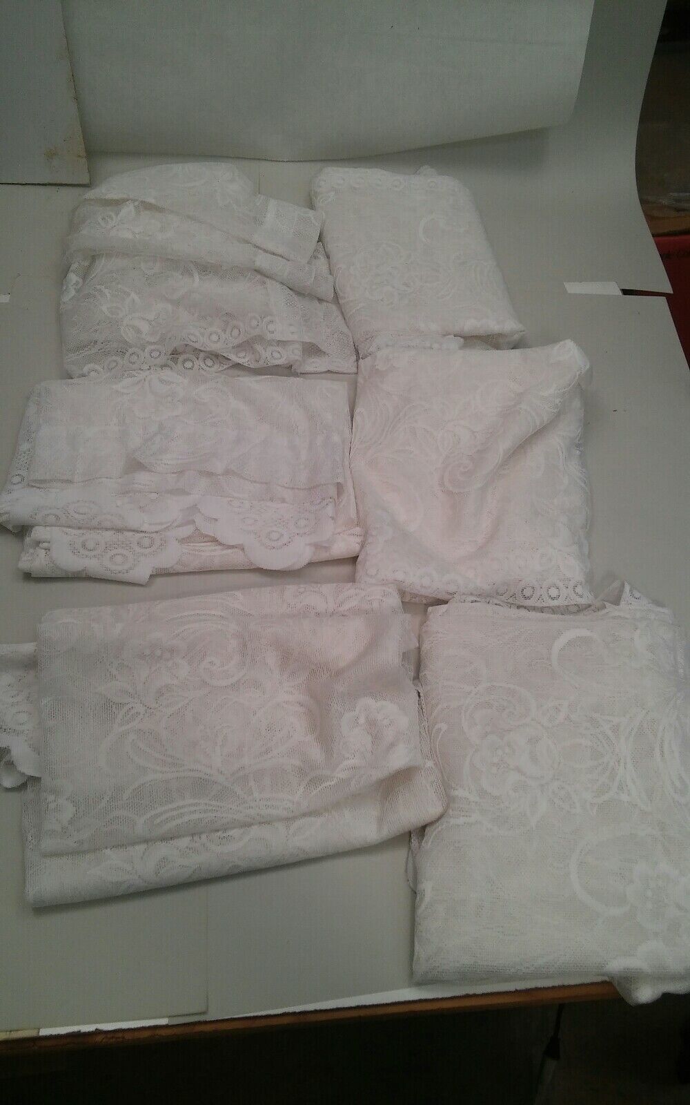 Here is a lot of 13 pieces window treatments. Polyester lace. 6 long drapes and the rest are top sections. Valance etc. Maker is unknown.