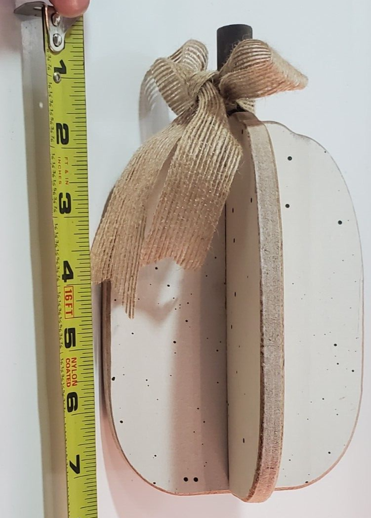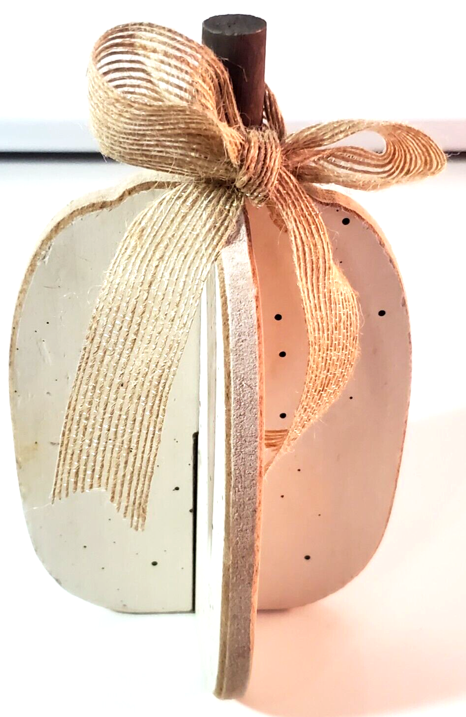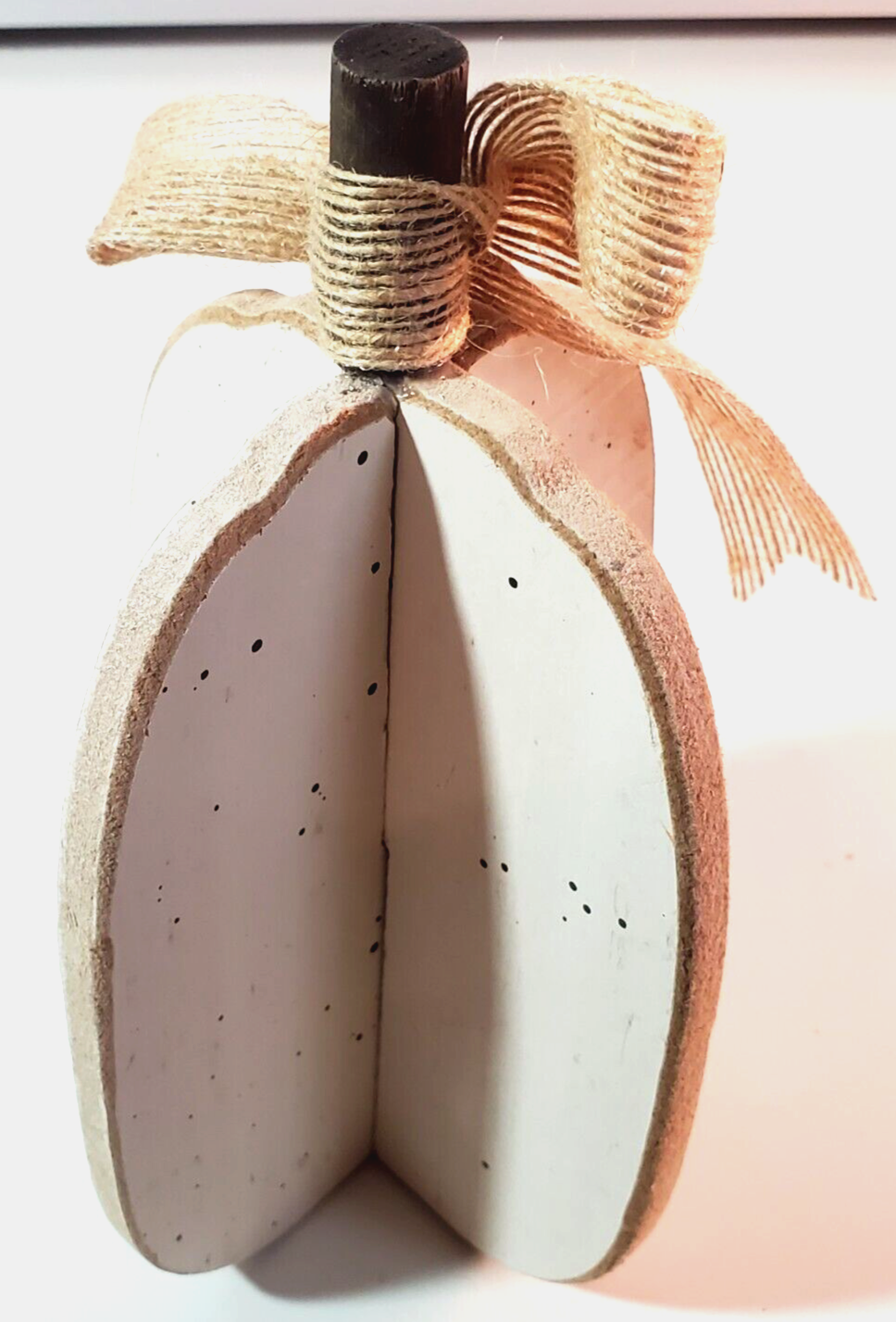 Wooden Pumpkin White W/Black Specks Burlap Bow Handmade