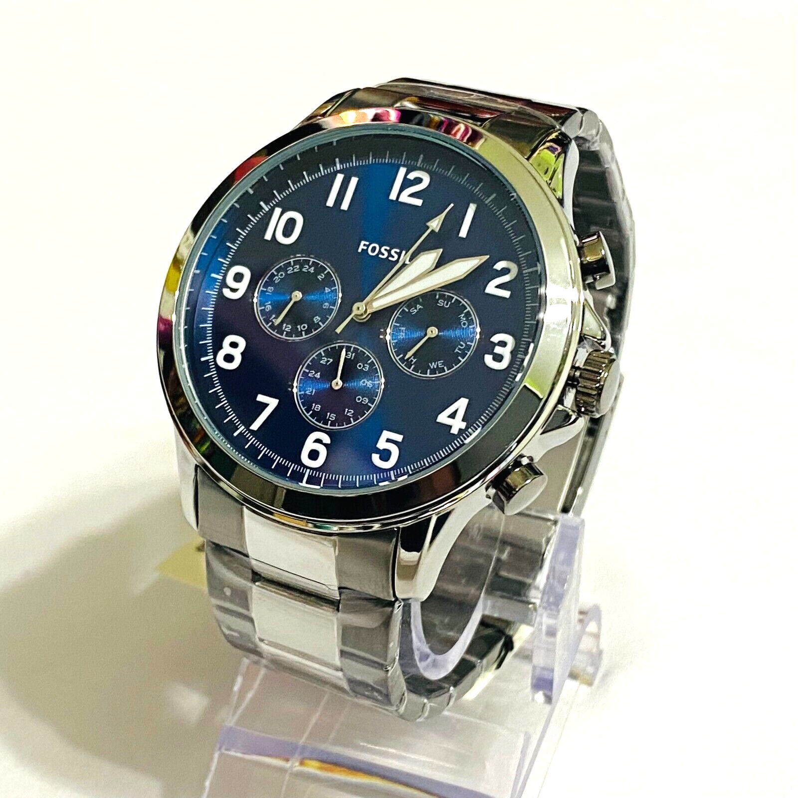Fossil BQ2540 Blue Chronograph 2Tone Silver Stainless Steel 5ATM Men's Watch