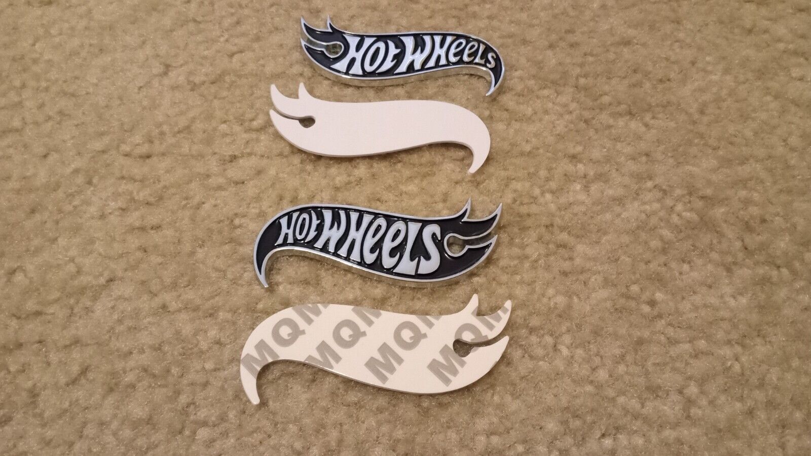 Hello, I am selling 2 Hot Wheels Emblems. Chrome and Black. Measure approximately 3 1/8" X 1 3/8". Attach with double sided tape. Smoke and pet free home. ALL SALES FINAL. NO RETURNS. Thank you for looking at my listing.