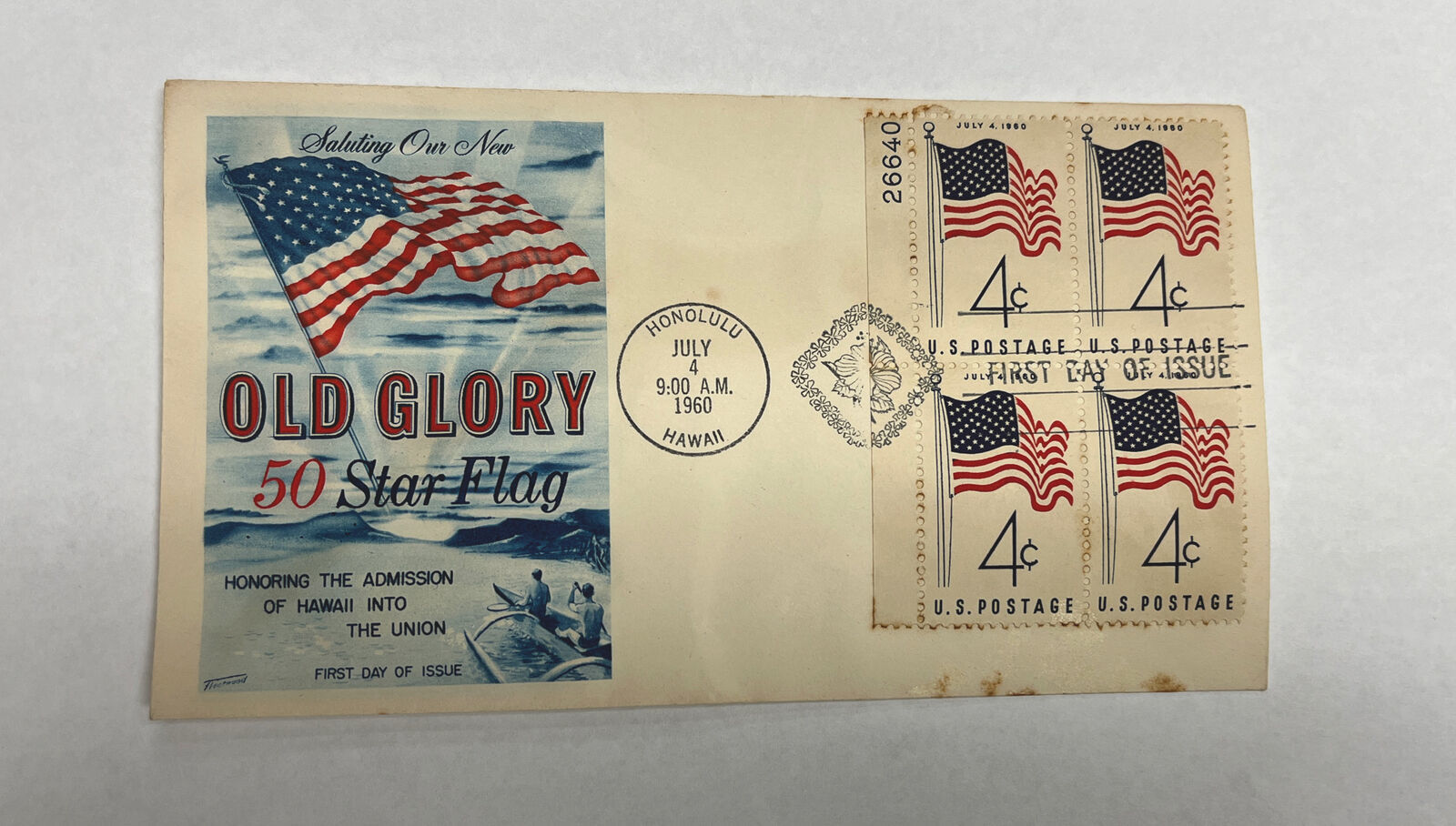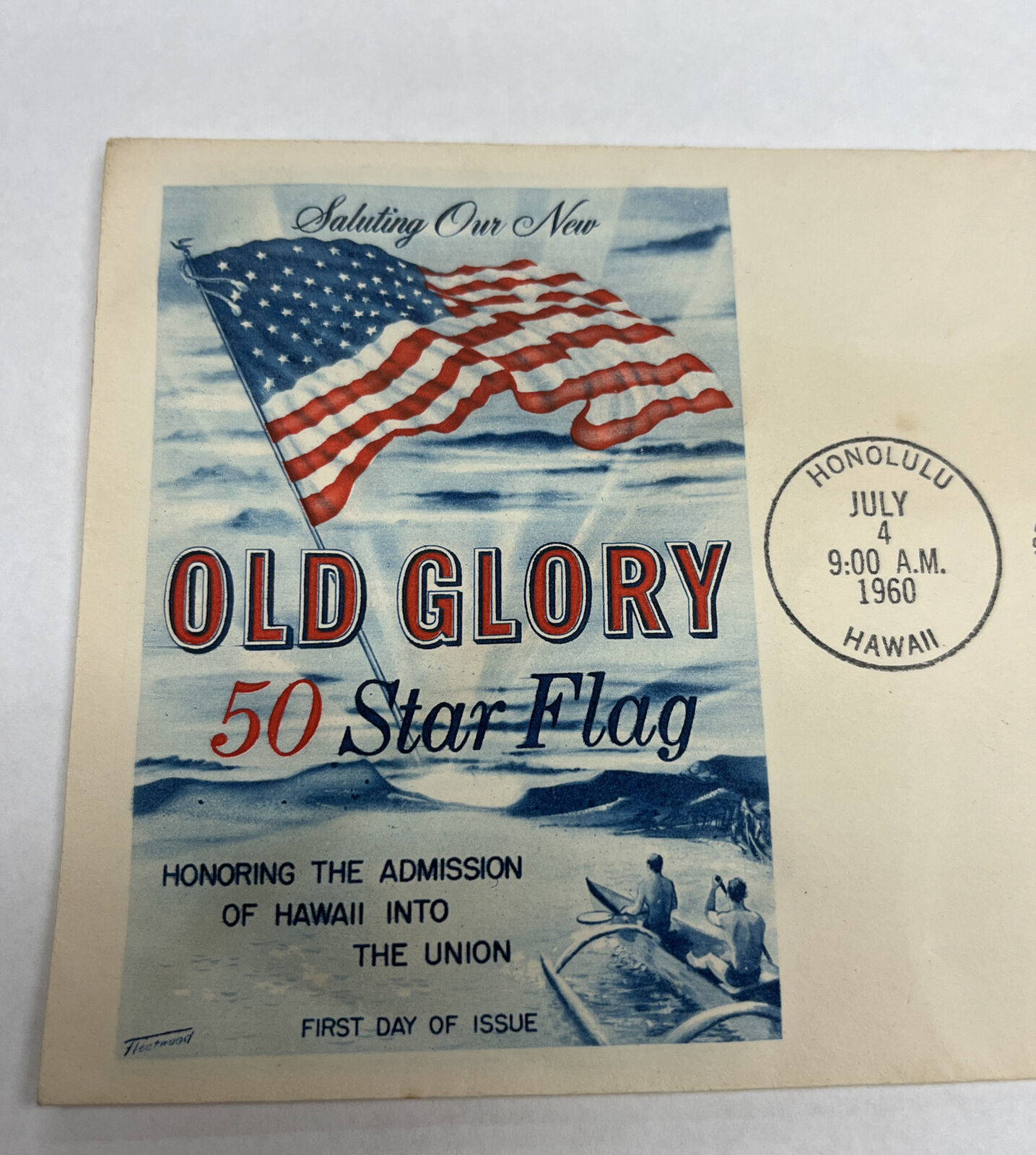 Old Glory 50 Star Flag Hawaii Enters the Union First Day Issue Mail Cover 1960
