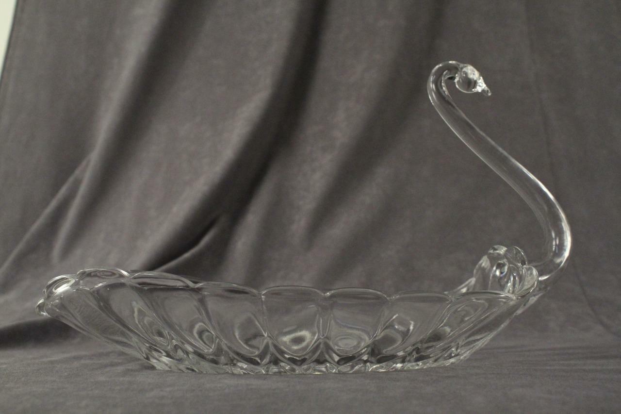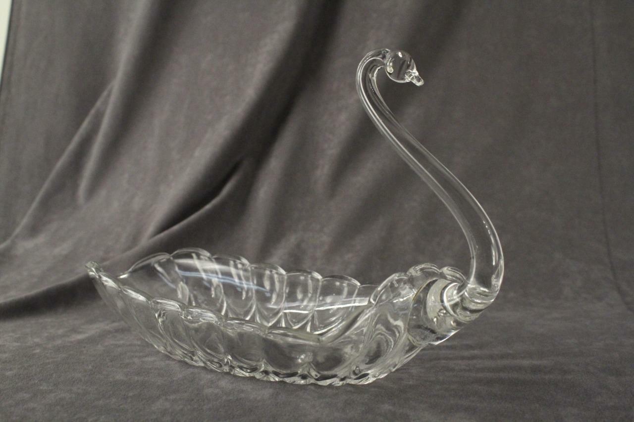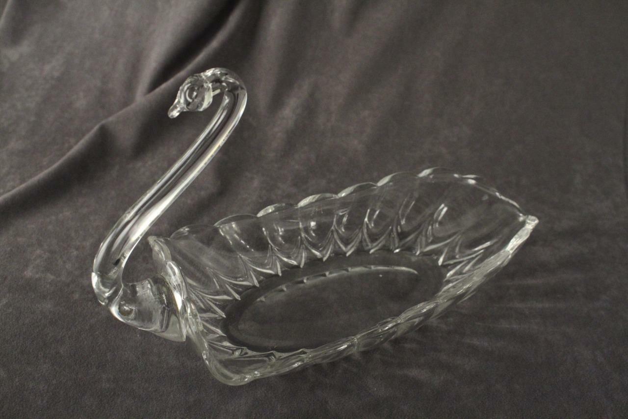Vintage Elegant Art Clear Glass DUNCAN MILLER SWAN Oblong Candy Dish Bowl. Measures 11.5" long by 6.5" tall. Several tiny bubbles in the glass. No chips or cracks.