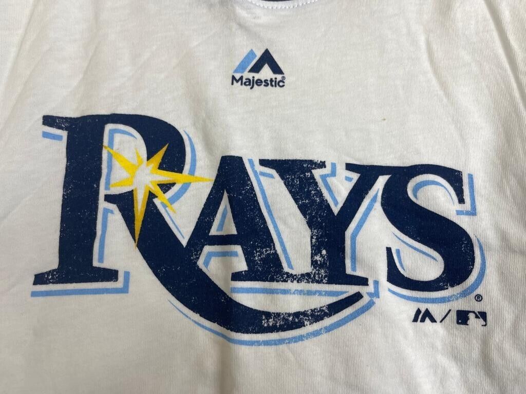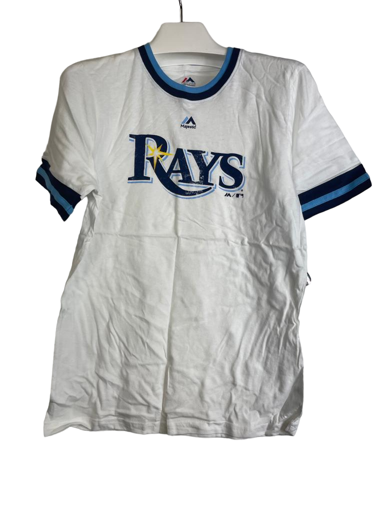 Majestic Youth Tampa Bay Rays T-Shirt S/S con collo a doppio strato, Bianco, Large 14/16