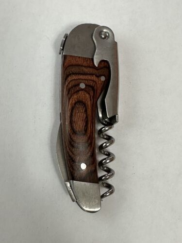 Laguiole L’eclair 440 Corkscrew Wine Opener in Stainless, Wood Waiter’s Friend