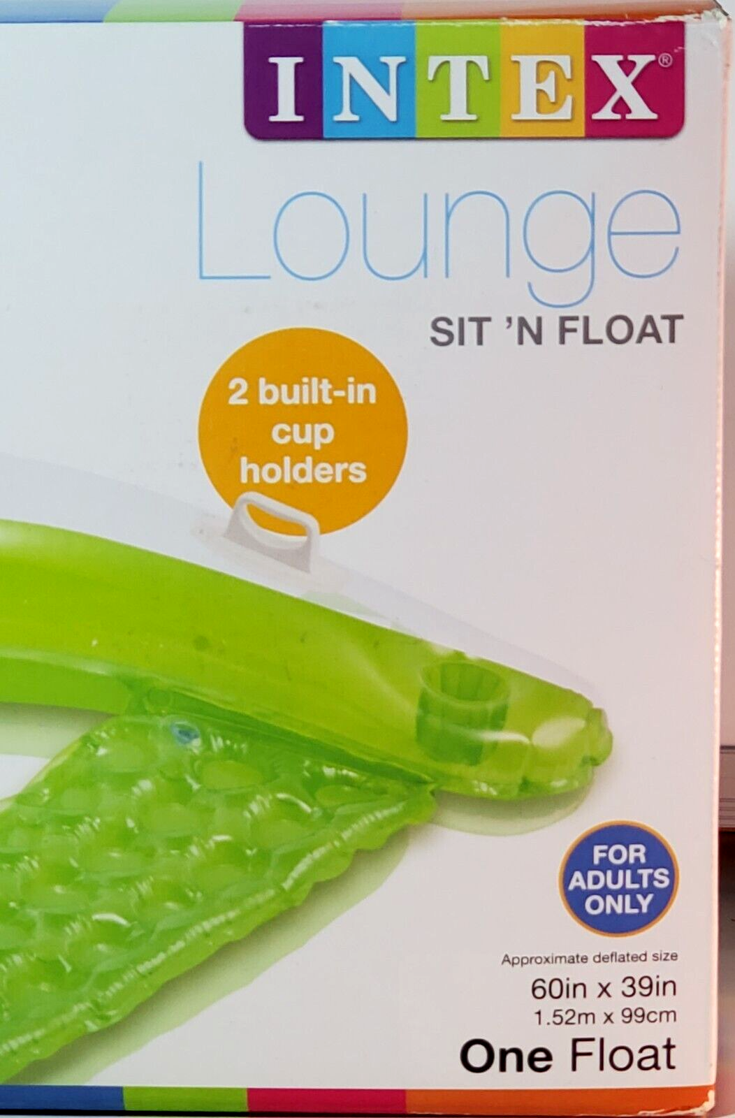 GREEN Sit N Float INFLATABLE Pool/Lake LOUNGE 60" X 39" 2 handles 2 cup holders BSLF
