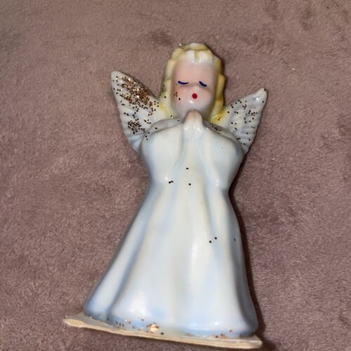 Vintage Praying Angel Glitter Christmas Wax Candle Figurine 5"