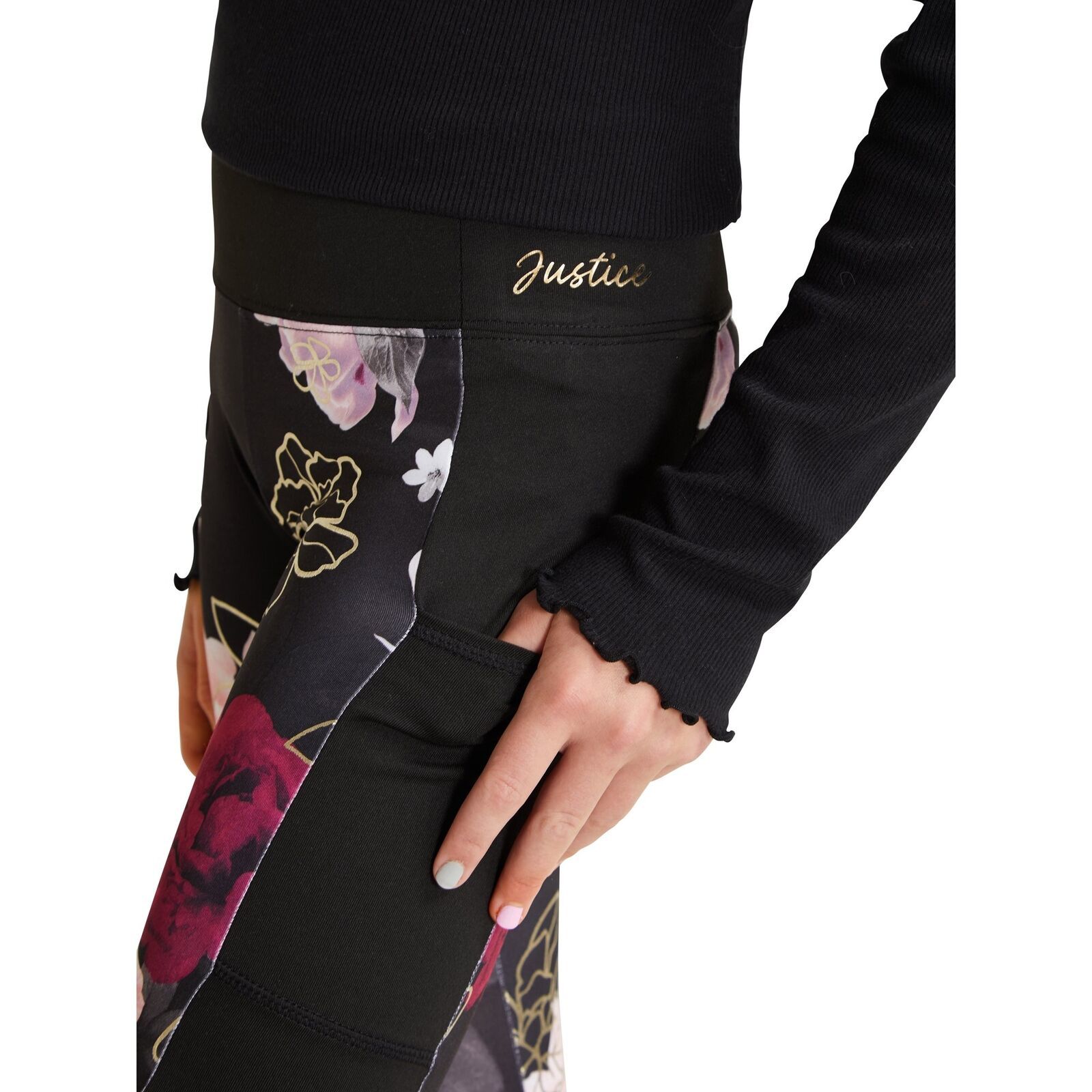 Your girl will love these Justice Collection X Leggings. Featuring a comfy high waist, these stylish leggings will have her looking cool from working out to hanging out. In a cool dark floral print, these adorable leggings will become a staple in her wardrobe. Pair with your favorite active tee for a look thats laid-back and on-trend!