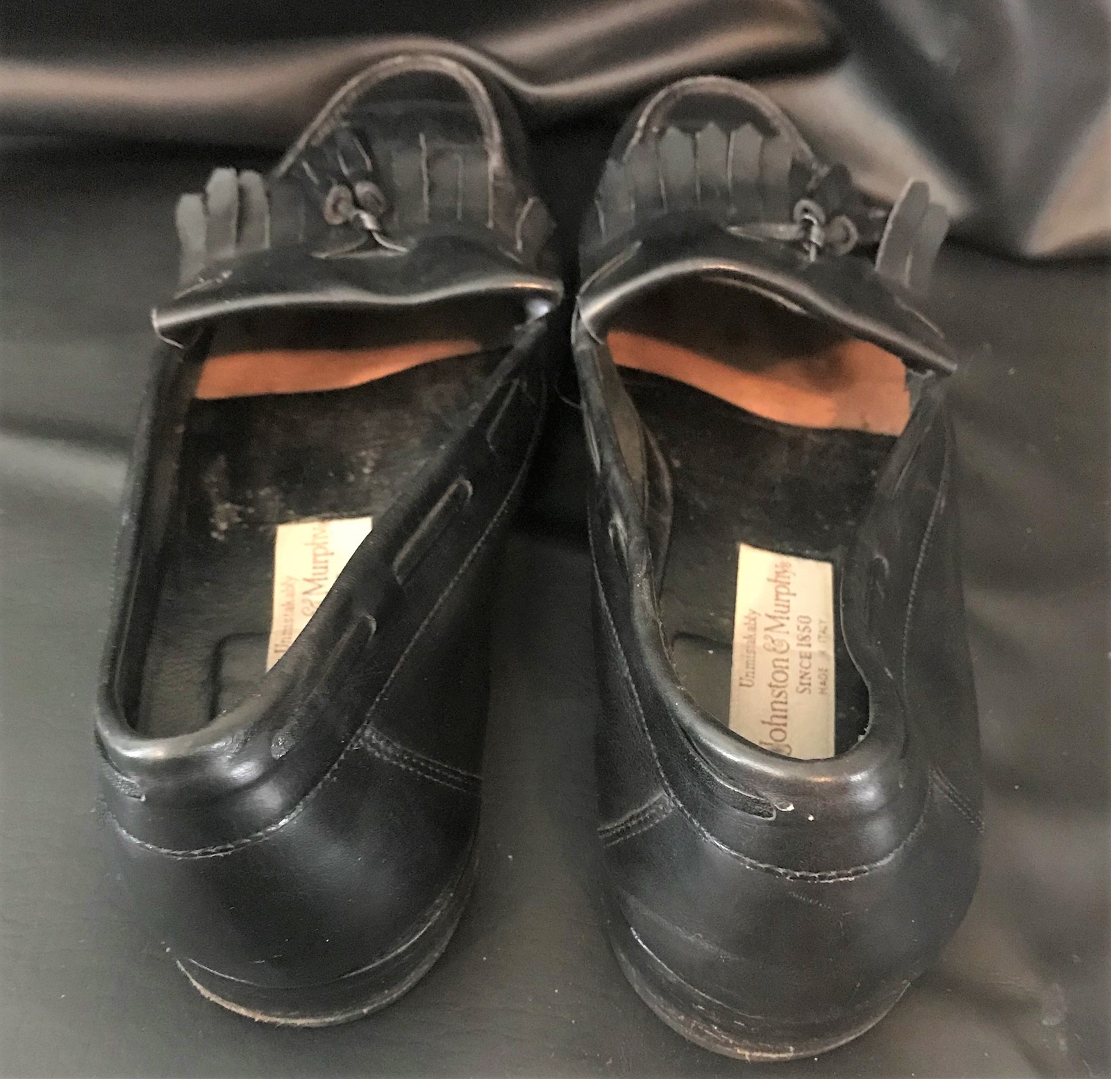 In this listing we're presenting A 1980's vintage pair of Johnston and Murphy Black frilled leather loafers. They're in truly superb wearable condition. If you're familiar with Johnston and Murphy then you already know about their extreme quality and high style. If you're a collector of truly fine vintage shoes this listing may be just for you.