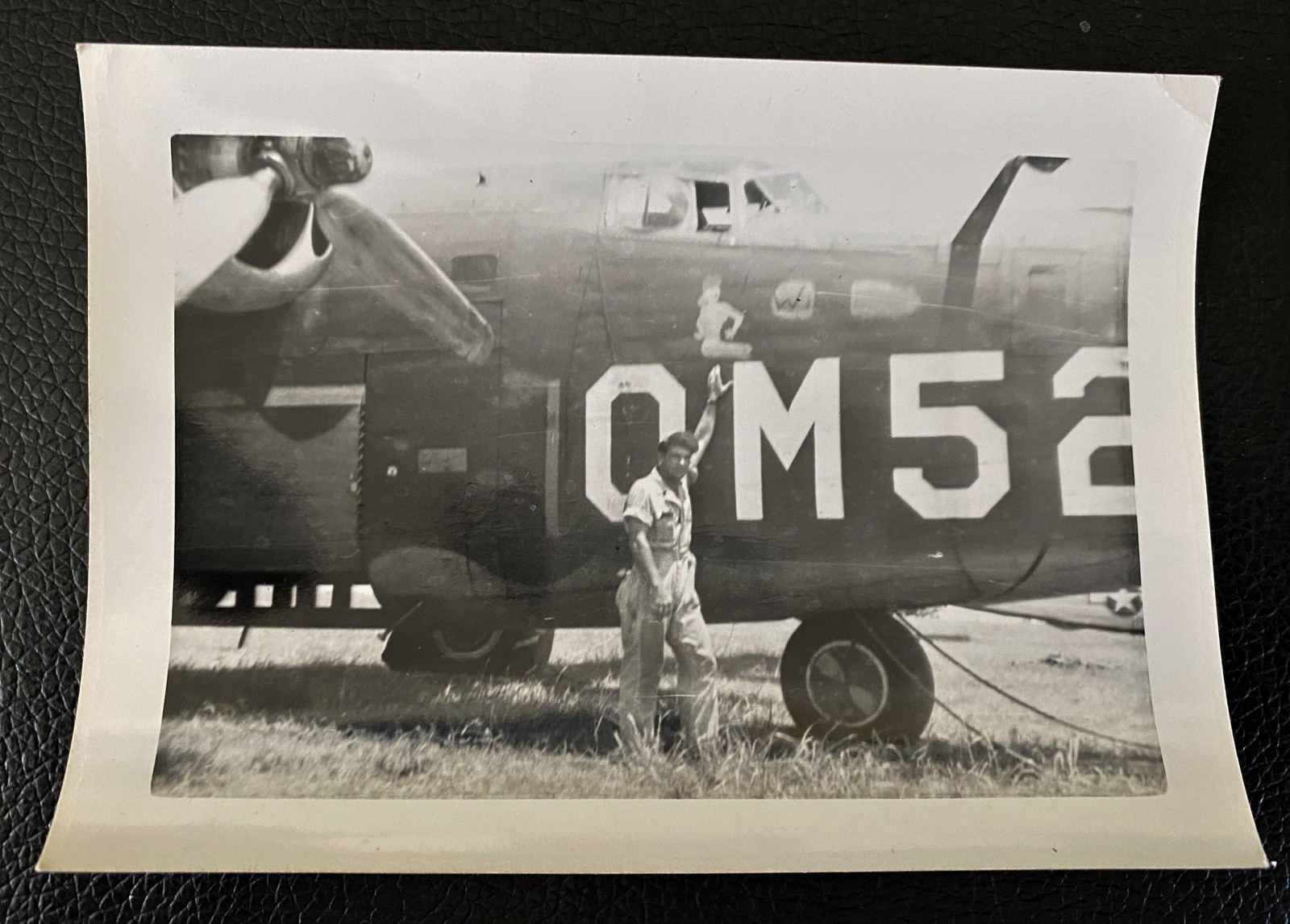 B&W WWII Photograph - Aviator Reaching For The Gal On The B-24 Bomber