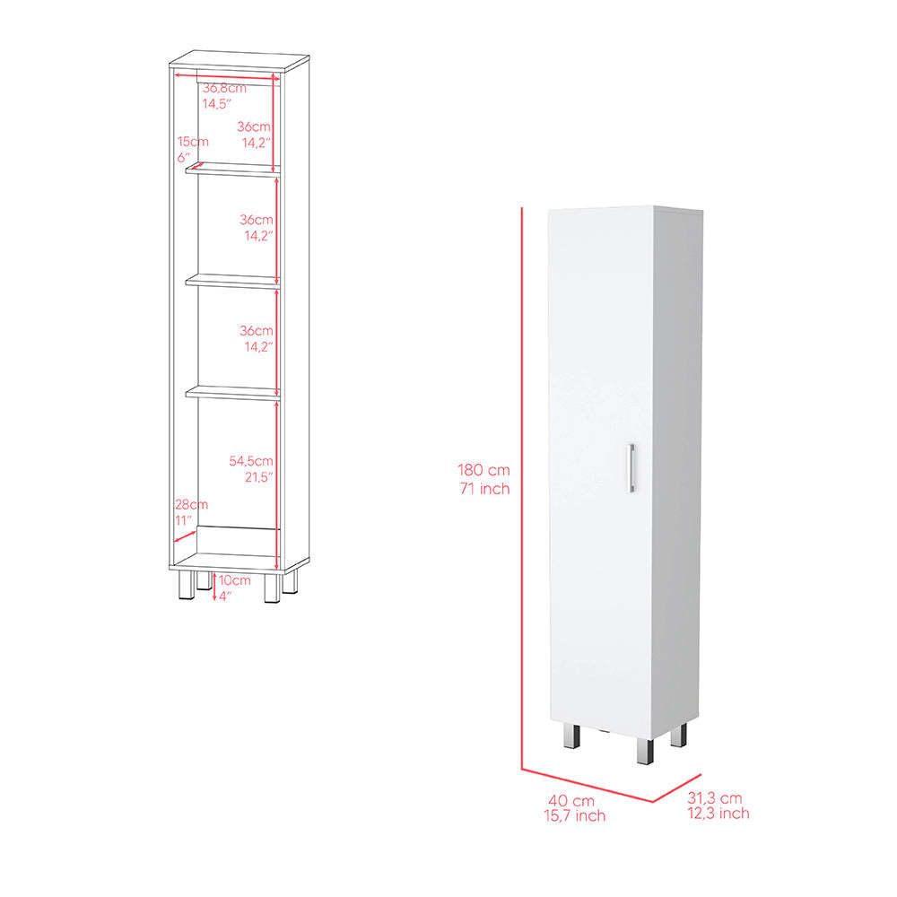 Molekeede is a storage cabinet with Single Door and four shelves (14.2W H x 14.5" W), which is what you are looking for. This modern and durable storage cabinet can be a piece of furniture for your kitchen, bathroom, or bedroom, and is perfect to sort jars, cleaning products, or your essentials accessories. Designed with an elegant white manufactured wood finish.