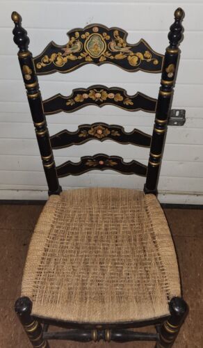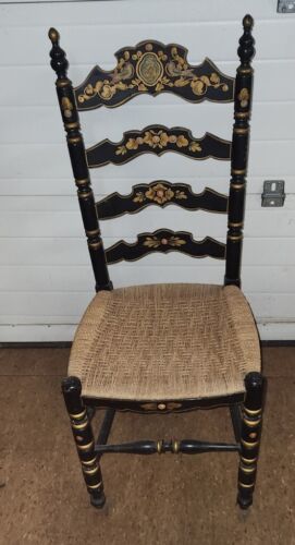 Vintage Hitchcock Style Ladder Back Stenciled Design Beautiful Rush Seat