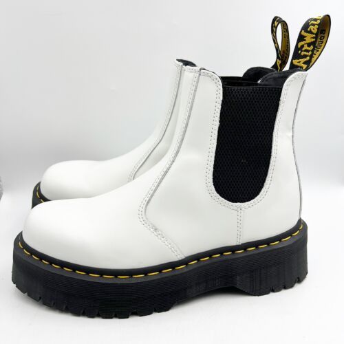 Dr. Martens 2976 Quad Platform Chelsea Boot White Leather Women’s US 8 UK 7