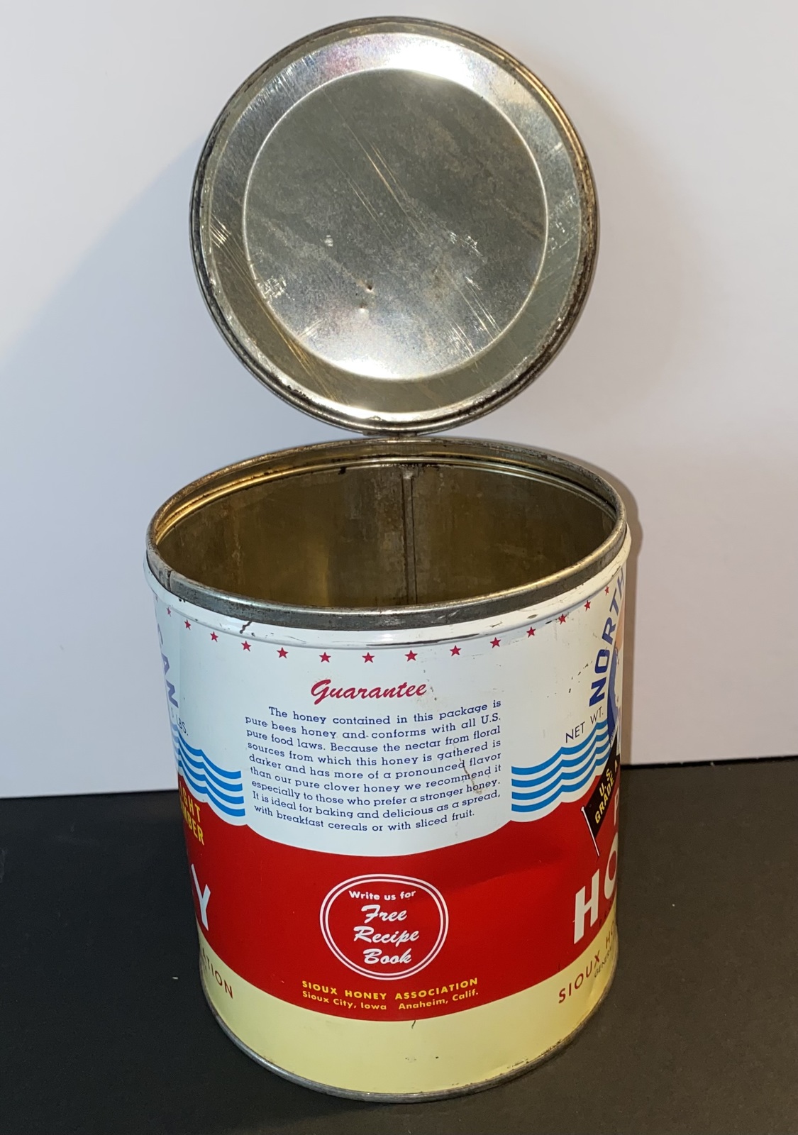 Vintage North American Pure Honey Empty Tin Can W/Lid -- 1950's