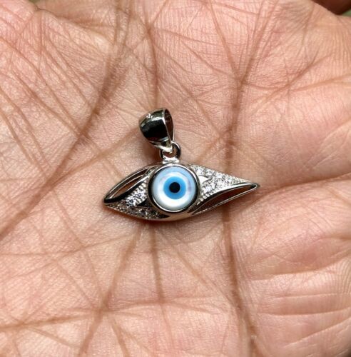 Artisan Crafted 925 Silver Evil Eye Protection Pendant, Amulet Nazariya, Mother of Pearl 1 Pc Jewelry, Eye Shape, Handmade, Handcrafted