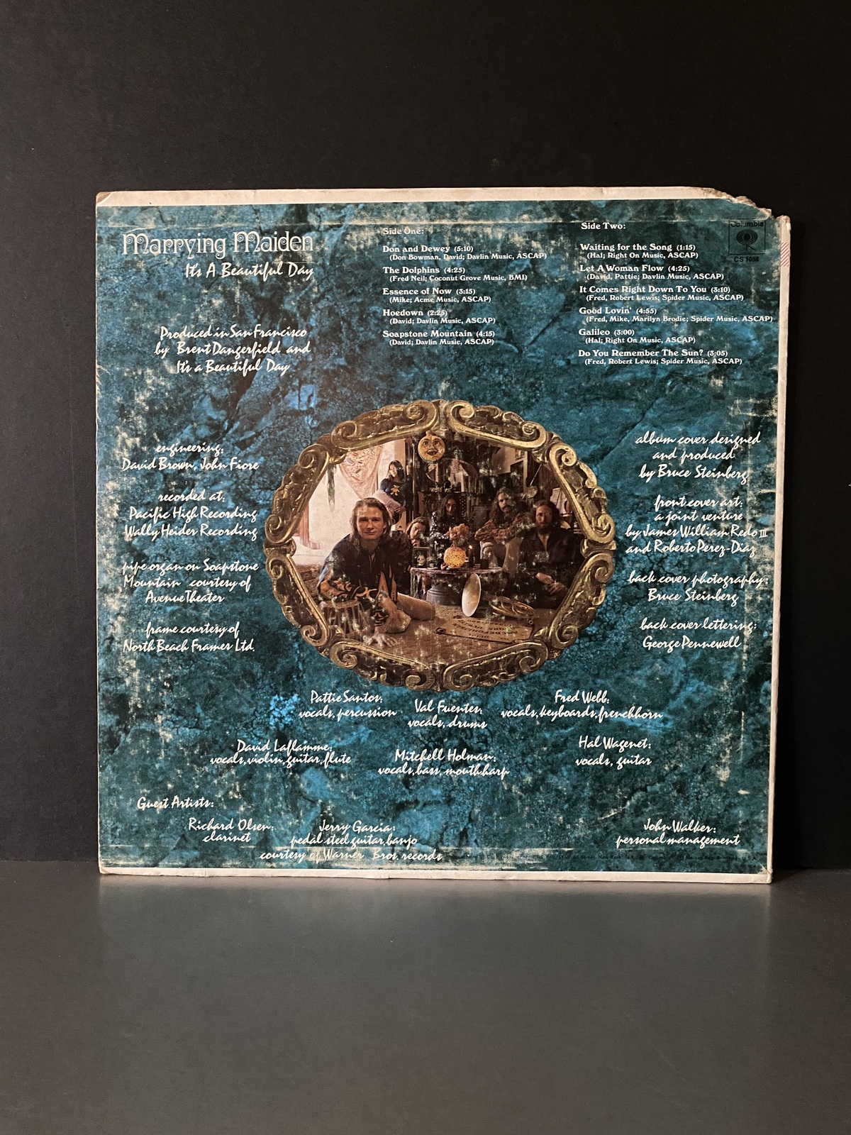This listing features a Vintage Vinyl Album titled; Marrying Maiden by; It's A Beautiful Day produced in 1970 by Columbia records. Our album is in good playing condition however our cover has some tearing on the left top and it's worn appropriately to its age. Please see our pictures. Marrying Maiden is the second studio album by San Francisco psychedelic band It's a Beautiful Day, released in 1970 on Columbia Records. Founding member Linda LaFlamme was replaced by keyboardist Fred Webb on this project. Grateful Dead guitarist Jerry Garcia contributed on two tracks and Charlatans member Richard Olsen guested on a track as well. The album was the band's most successful on the charts, reaching number 28 in the U.S. and number 45 in the U.K.