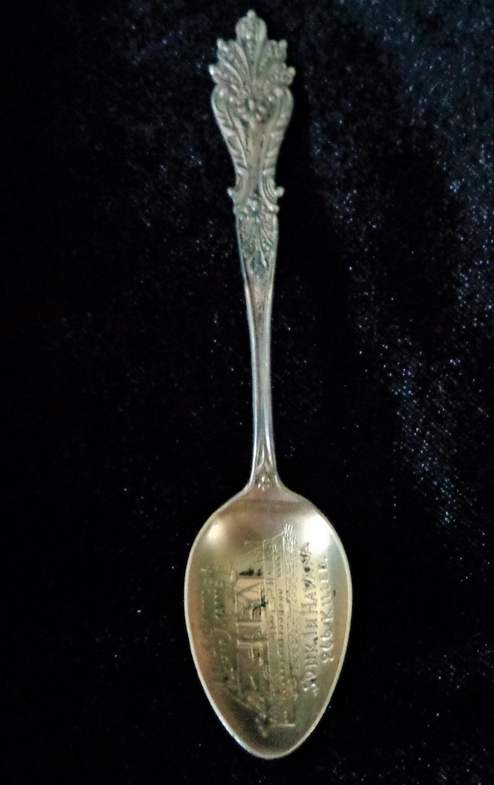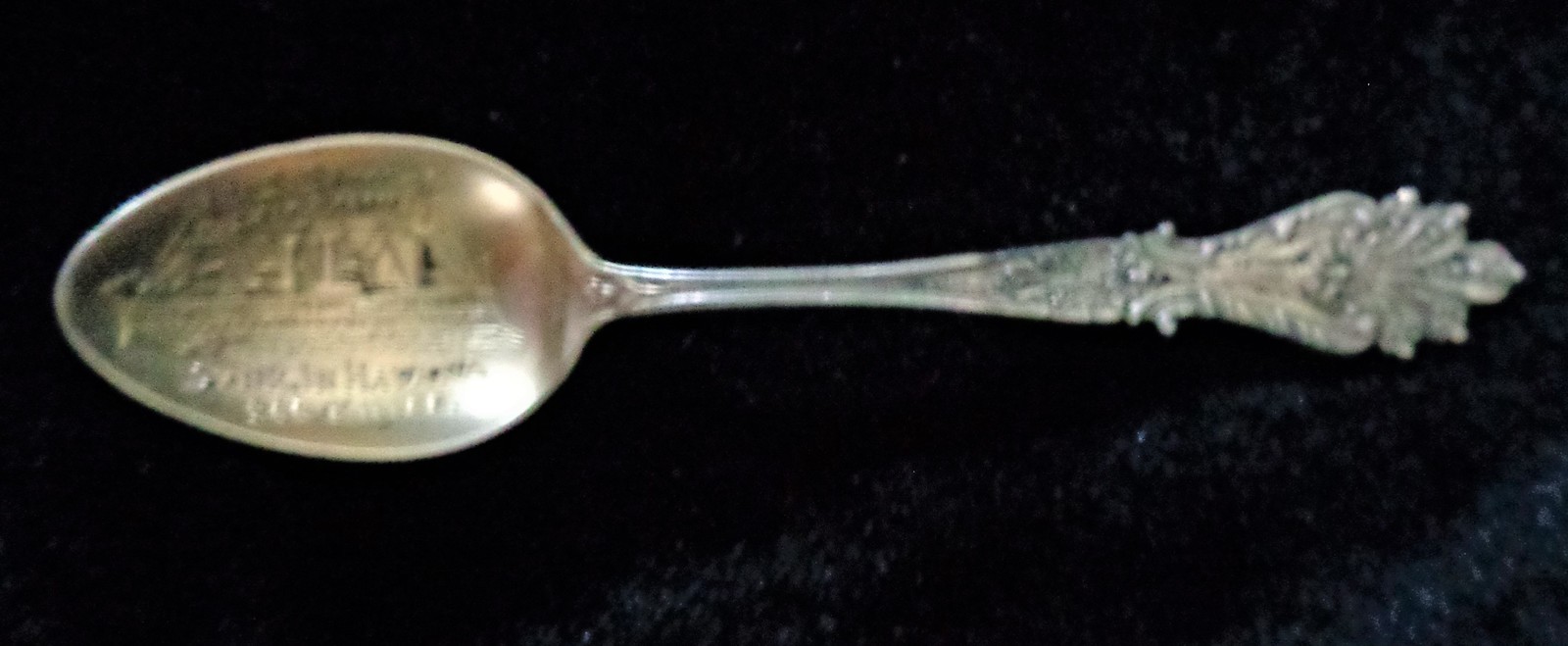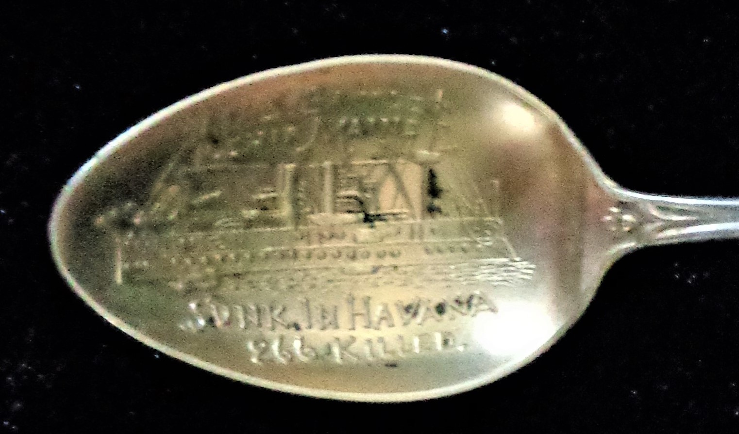 For a tidy little spoon made up of 5 grams of sterling silver, this spoon sure says a whole lot about an event that many people have long forgotten about. Inscribed on the top of the bowl it reads, "U.S. Battleship Maine". Underneath that description is a detailed etching of the ship itself. Underneath the ship is the inscription, "Sunk in Havana 266 Killed". It has a detailed flowered filigree relief on the top of the handle that is just beautiful. On the back of the stem it is inscribed, "sterling".