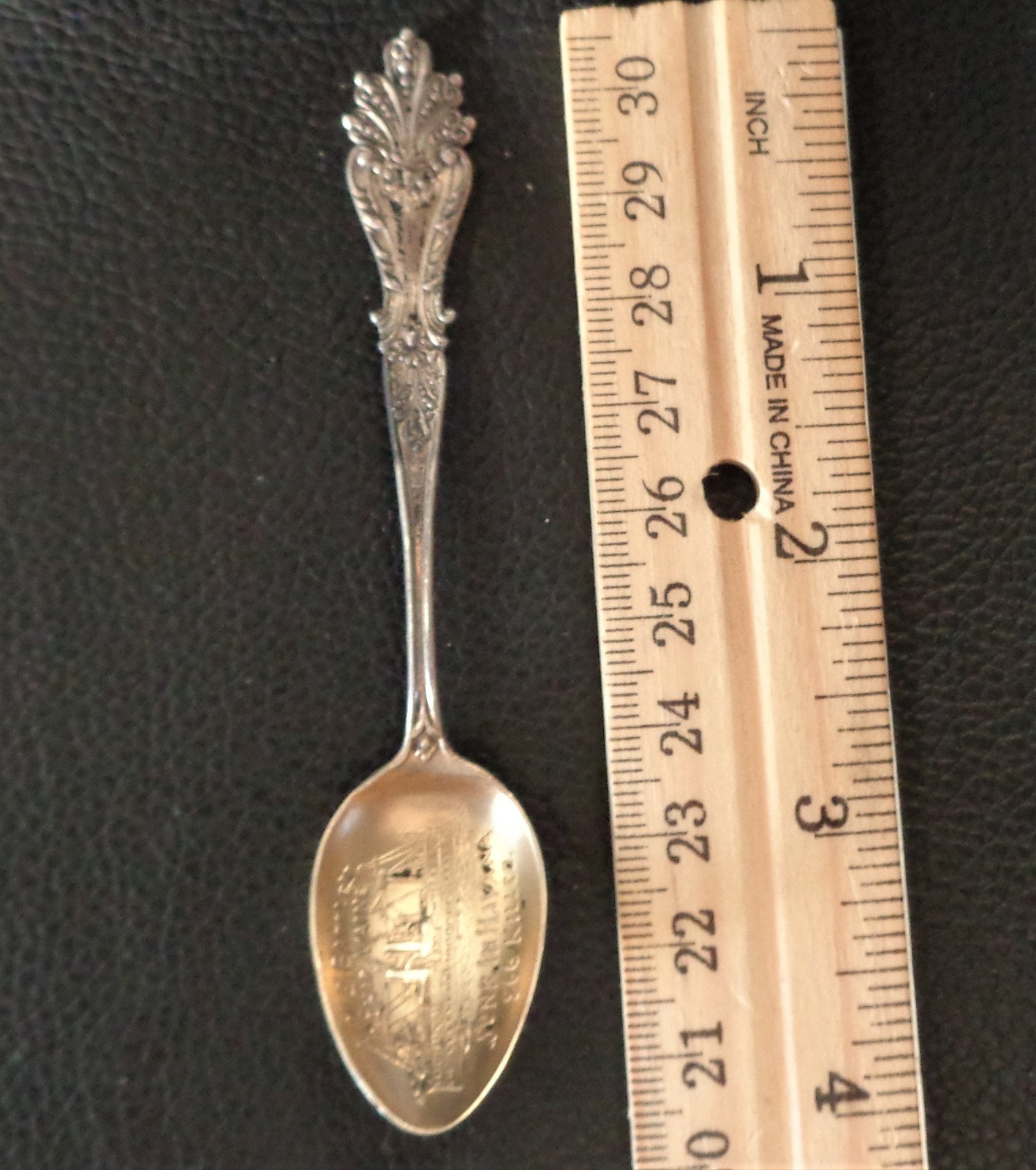 It was very difficult to get really good pictures of this, however, we tried different lighting and did the best we could to depict this beautiful spoon. As for age, it is our understanding that spoons like these would show up on the market on the ten year anniversaries of a major event like this which happened in 1889.