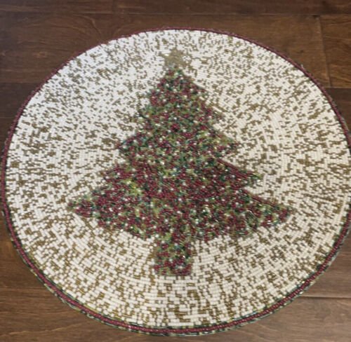 NWT Tahari Home Beaded Charger Christmas Tree Holiday 15" Round.