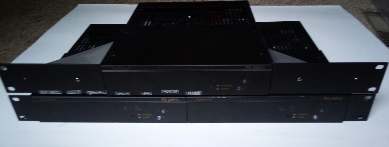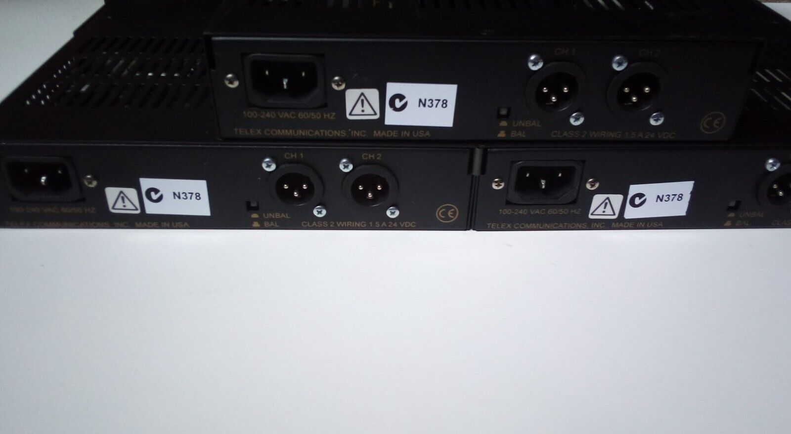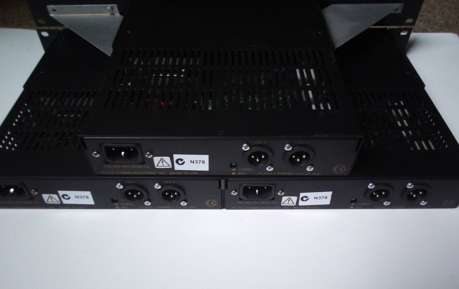 3 Audiocom SN-1100 rack mountable power supplies by TelexCom with power cords powers the Radiocom IC-100 6 channel professional coach communications console and the Audio com JSE-100 XLR expantion panel, also available. Securely packed and shipped.