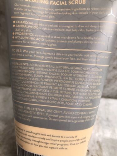 Spa Scriptions Charcoal/Sandalwood Exfoliant Favial Scrub:Probiotics/Hyda A.