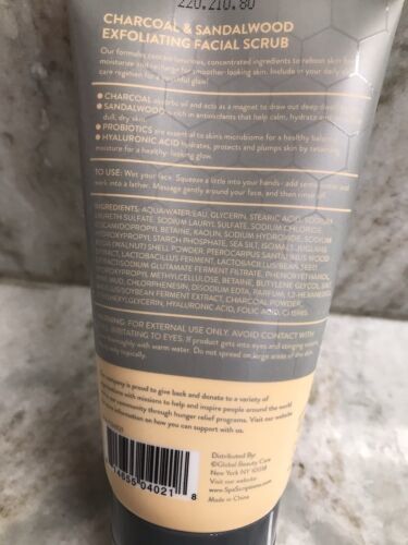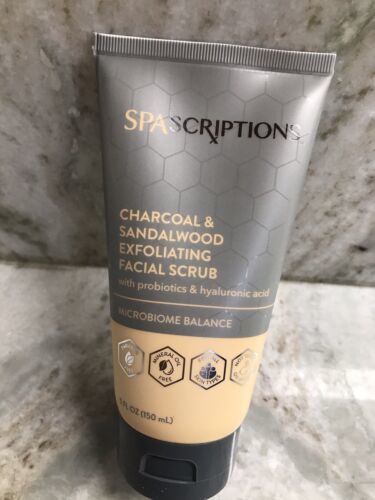 Spa Scriptions Charcoal/Sandalwood Exfoliant Facial Scrub:Probiotics/Hyda Acid-