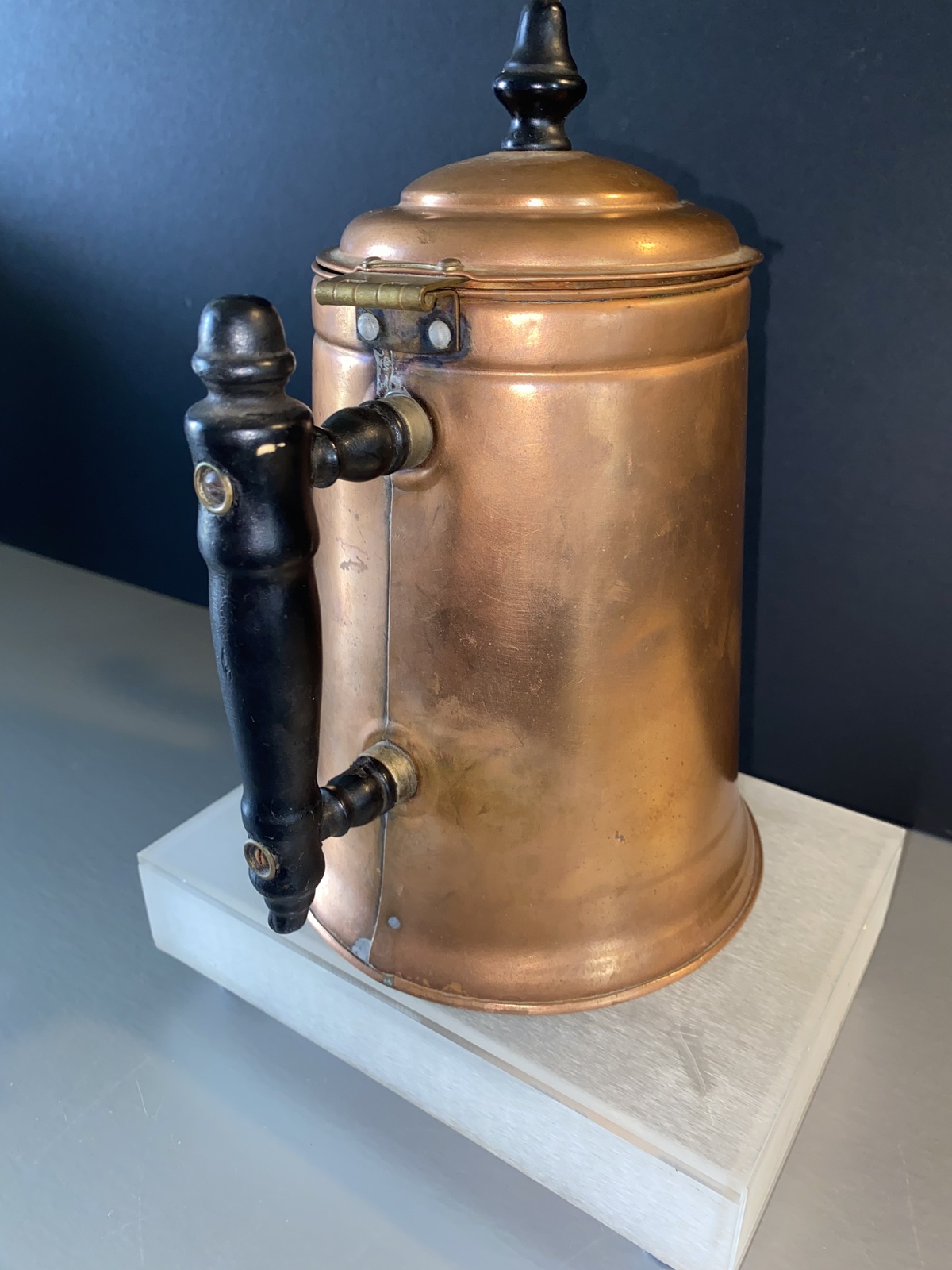 This listing features an Antique Rome Ware Copper Tea Kettle. This listing is our second Rome Ware Copper Tea Kettle. We estimate this piece is from the 1930's. We think it's beautiful.